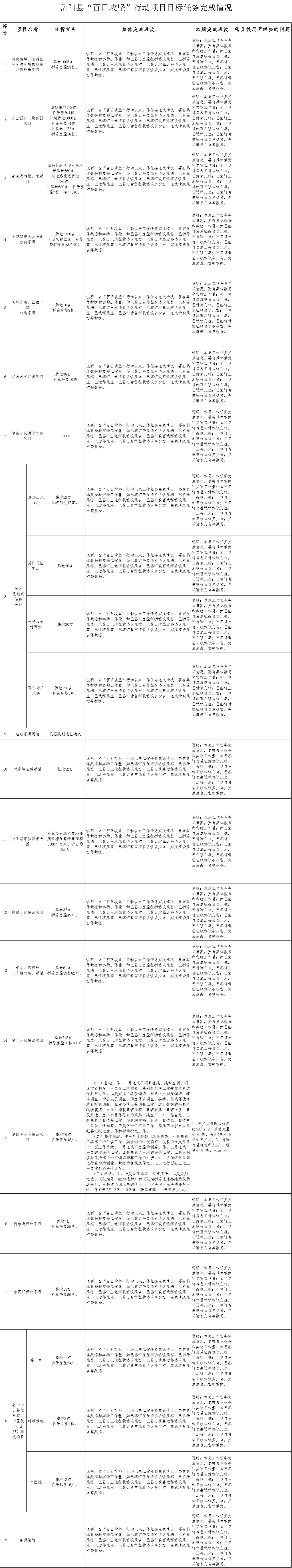 嶽陽縣“百日攻堅”行動項目目標任務完成情況