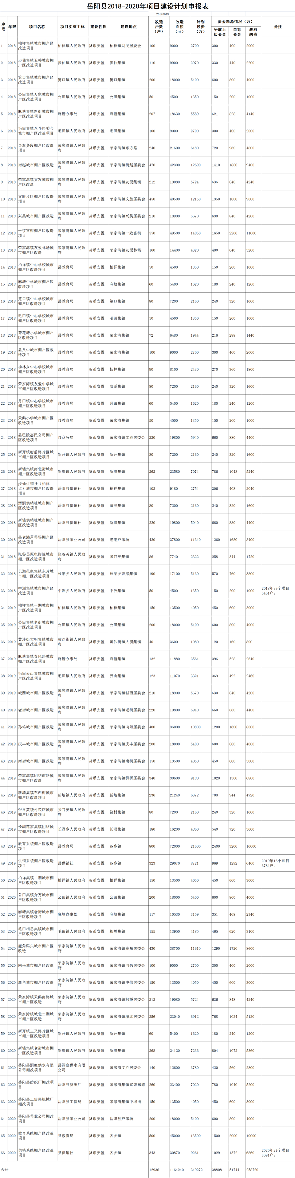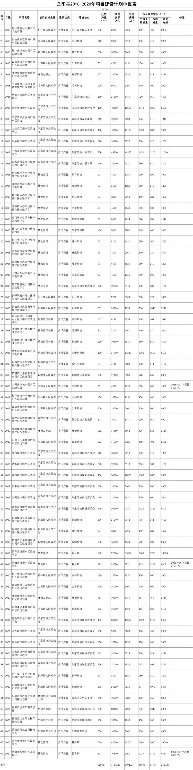 嶽陽縣2018-2020年項目建設計劃申報表