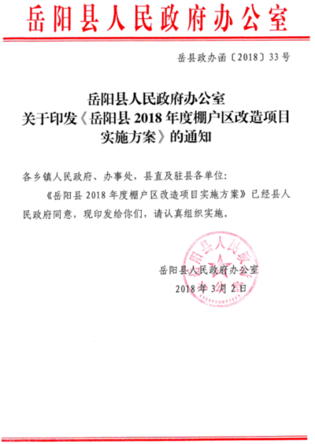 嶽縣政辦函[2018]33號.2018年棚改實施方案