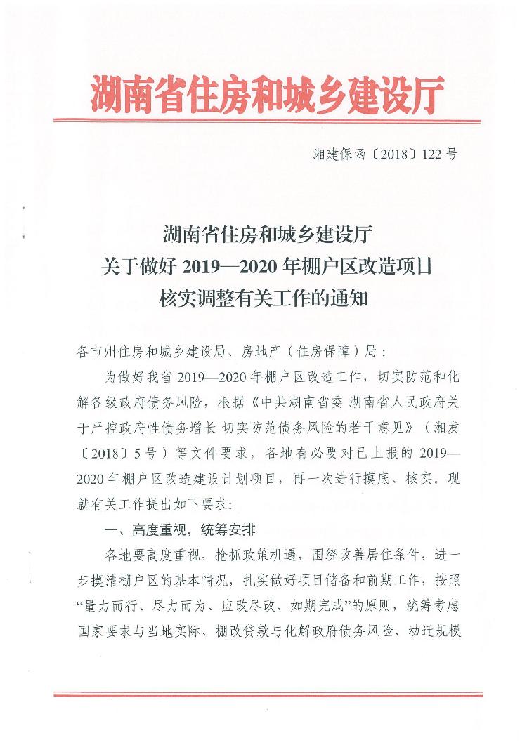 關於做好2019-2020年棚戶區改造核實調整有關工作的通知(湘建保函2018)122號