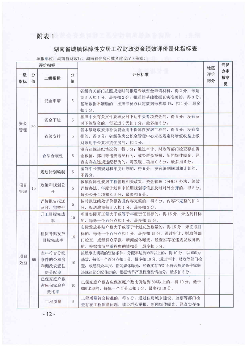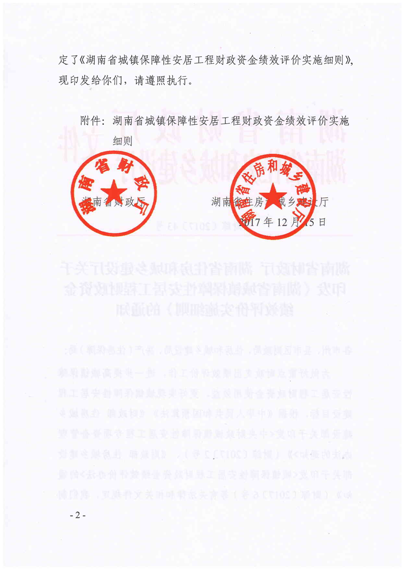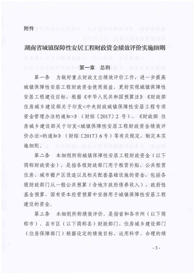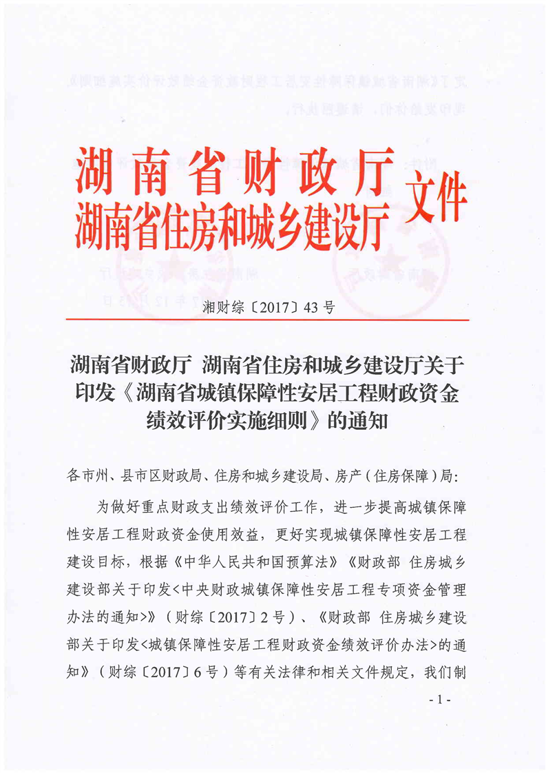 湖南省城鎮保障性安居工程財政資金績效評價實施細則(湘財綜〔2017〕43號)