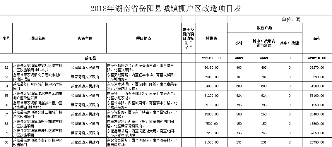 2018年湖南省嶽陽縣城鎮棚戶區改造項目表