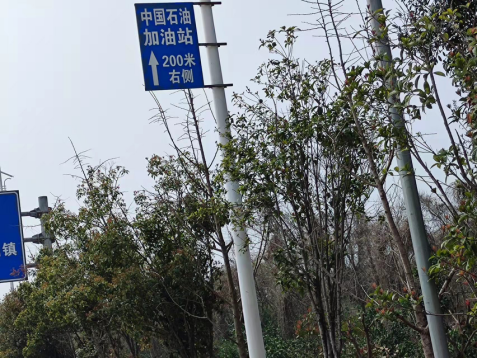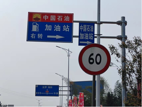 三是國道240(K1582+500M)西側路麵商業廣告牌“中國石油加油站右轉→”擬拆除,“┠”字型標識牌變形,擬修複或替換新“┠”字型標識牌,見圖三、圖四。