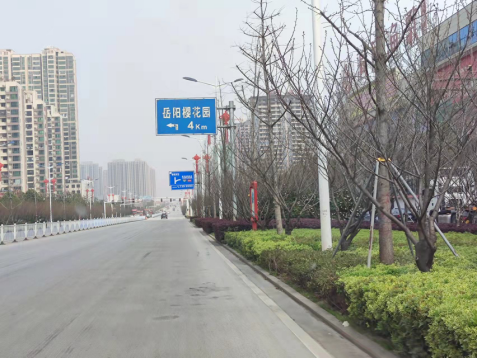 九是榮鹿公路中信路段交通標識牌北側路麵商業廣告牌“嶽陽縣櫻花園”擬予以拆除,見圖十。