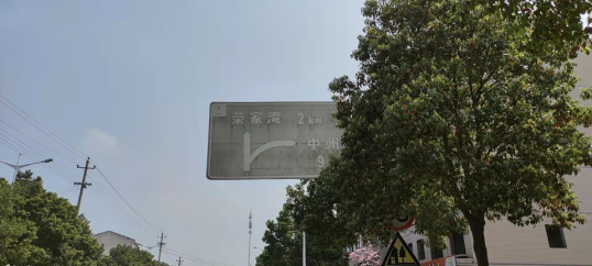 一是國道240與榮寶公路平交路口西側路麵往北400米交通標識牌右方指向“中洲鎮”改為“中洲鄉”,見(圖一)。