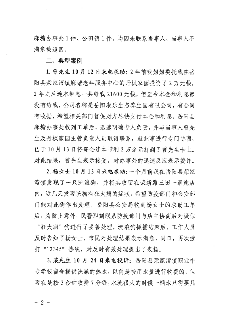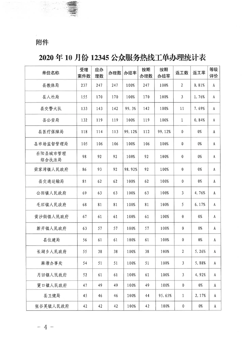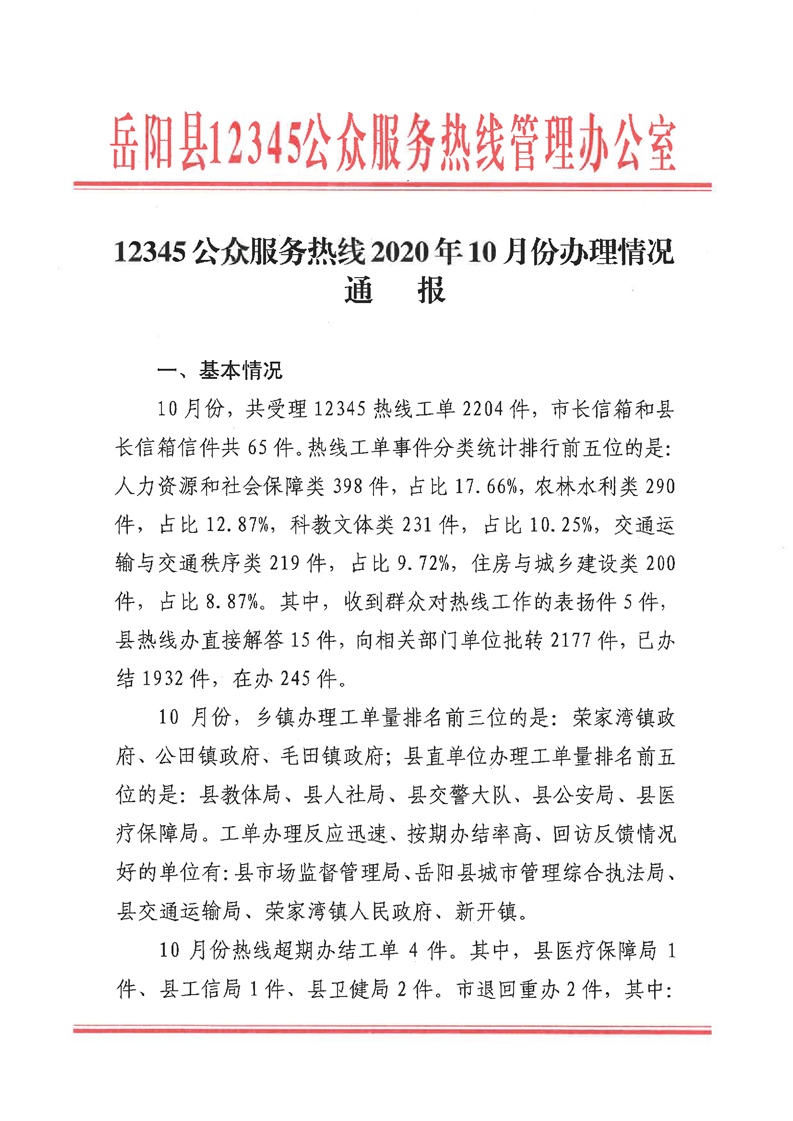 12345公眾服務熱線2020年10月份辦理情況通報
