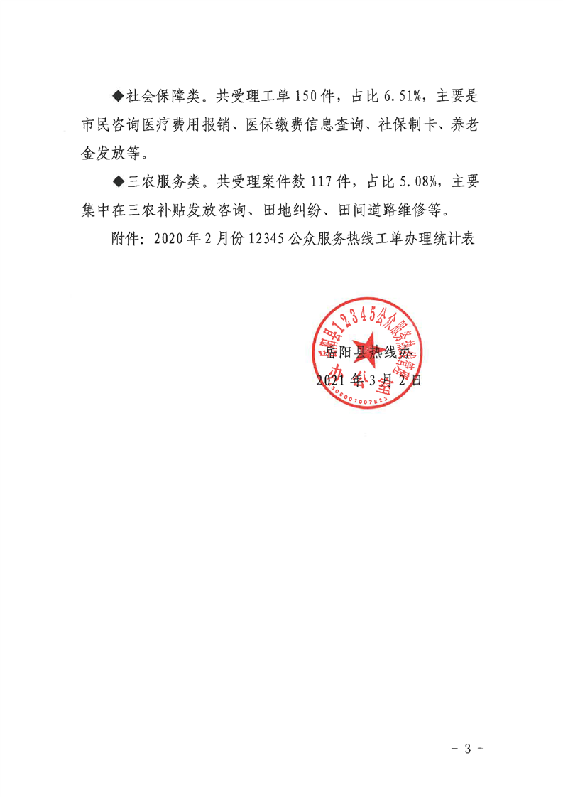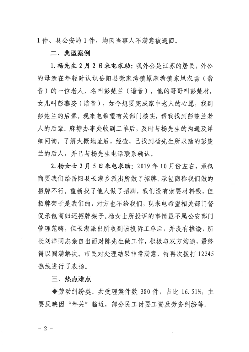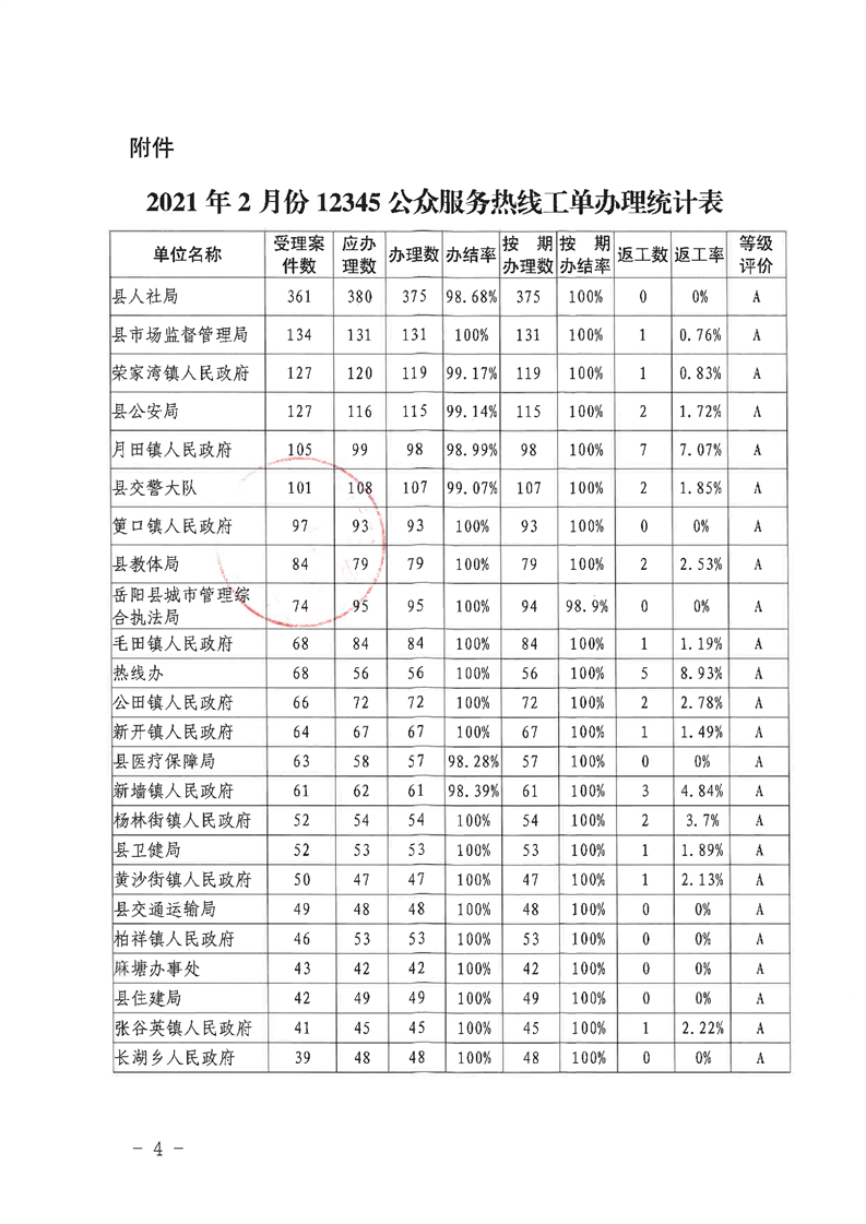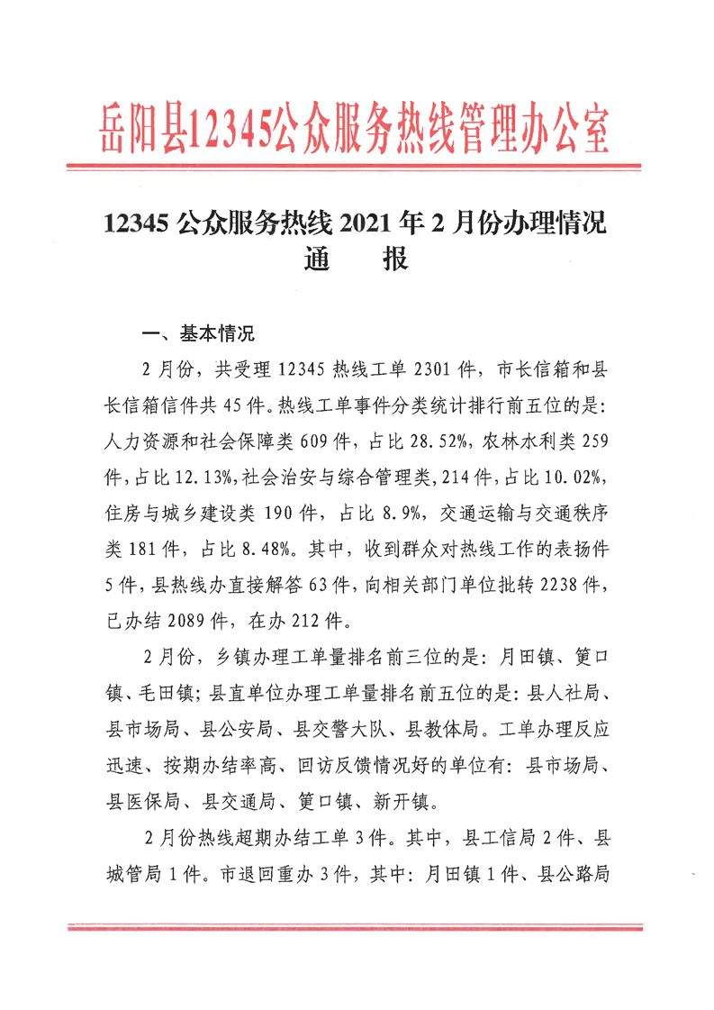嶽陽縣12345公眾服務熱線2021年2月辦理情況通報