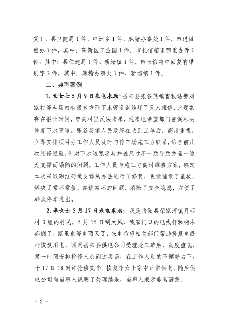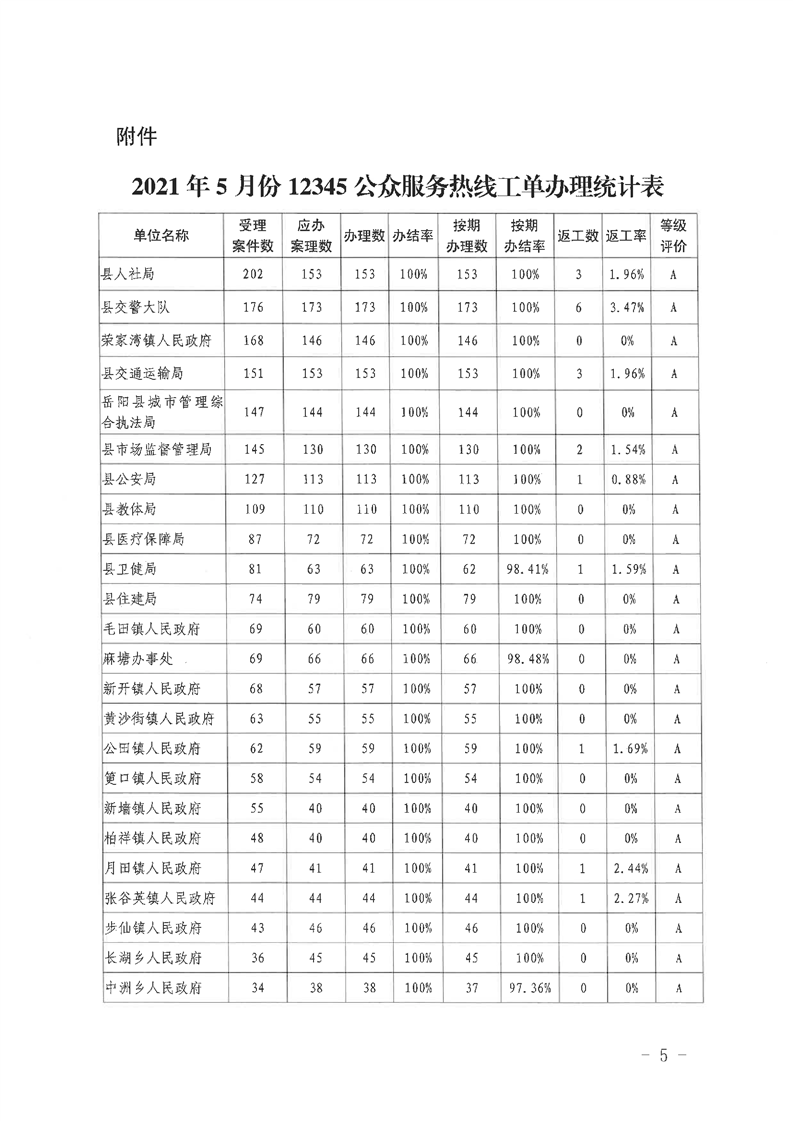 嶽陽縣12345公眾服務熱線2021年5月辦理情況通報