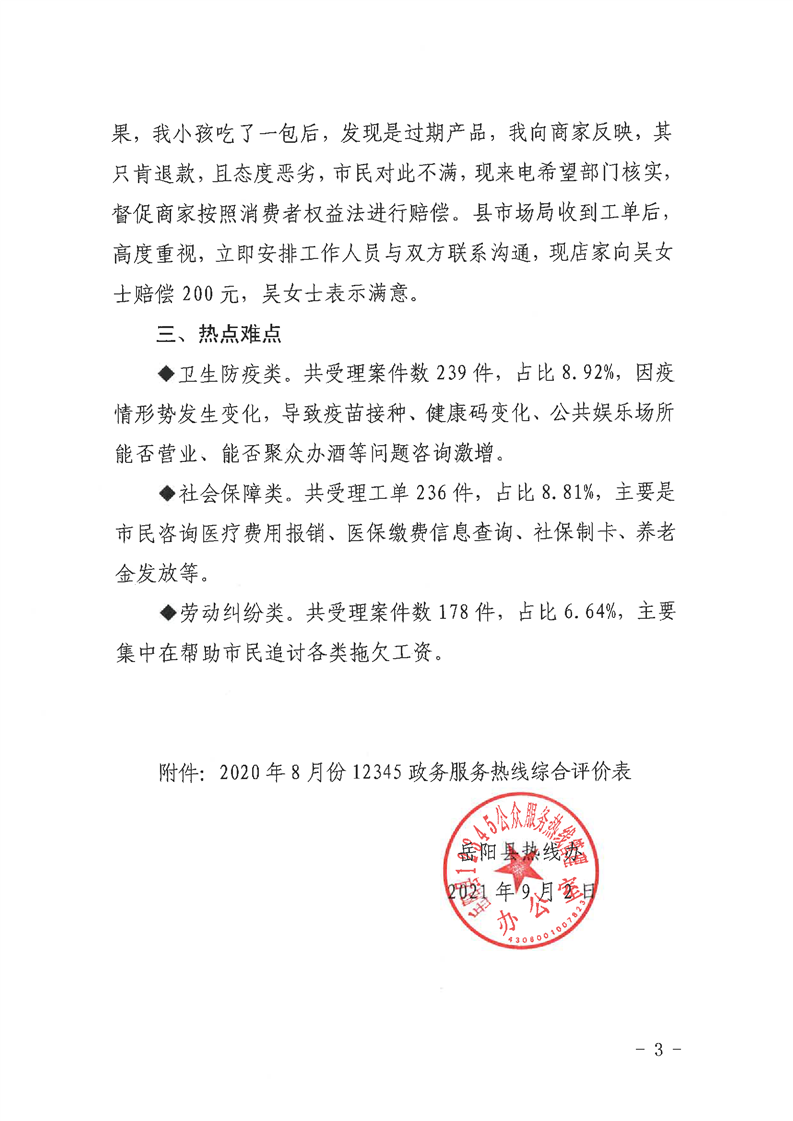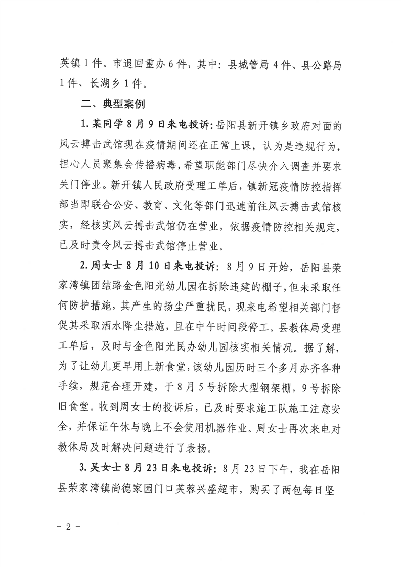 嶽陽縣12345公眾服務熱線2021年8月辦理情況通報