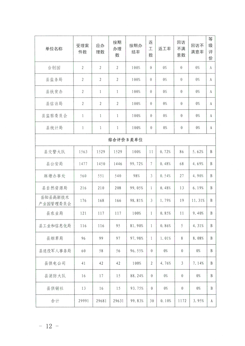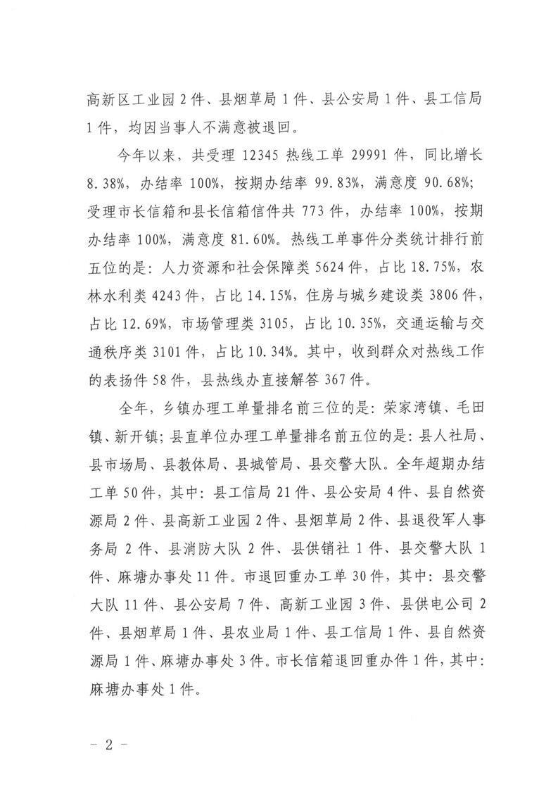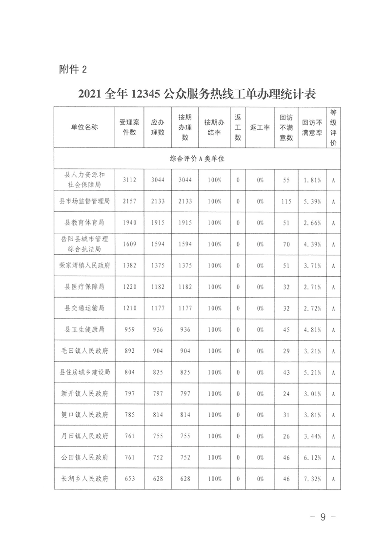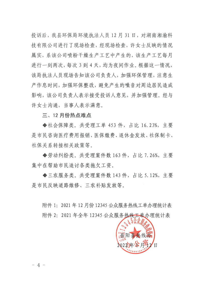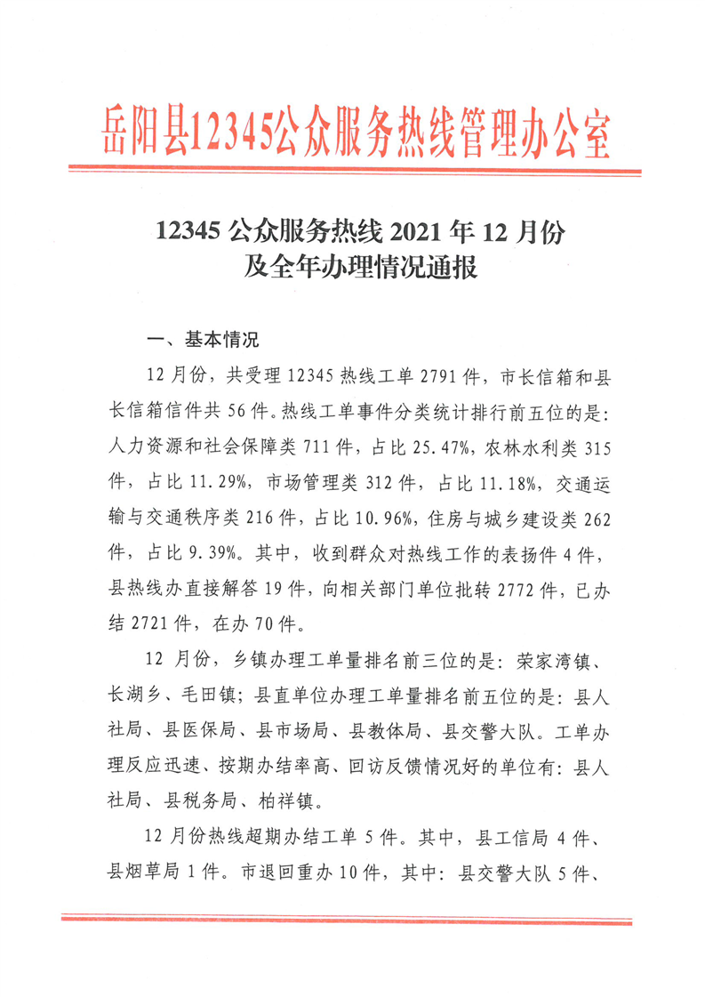 嶽陽縣12345公眾服務熱線2021年12月份及全年辦理情況通報