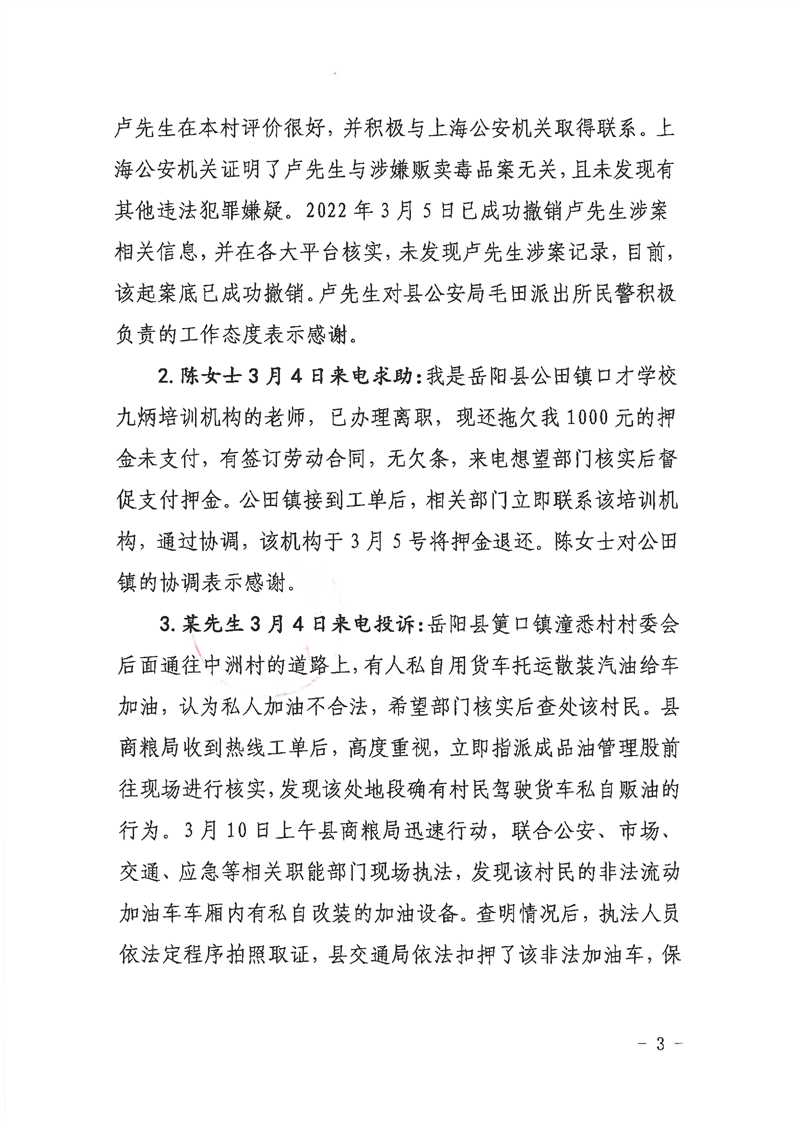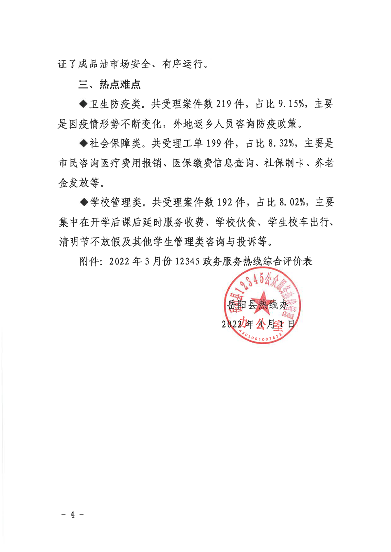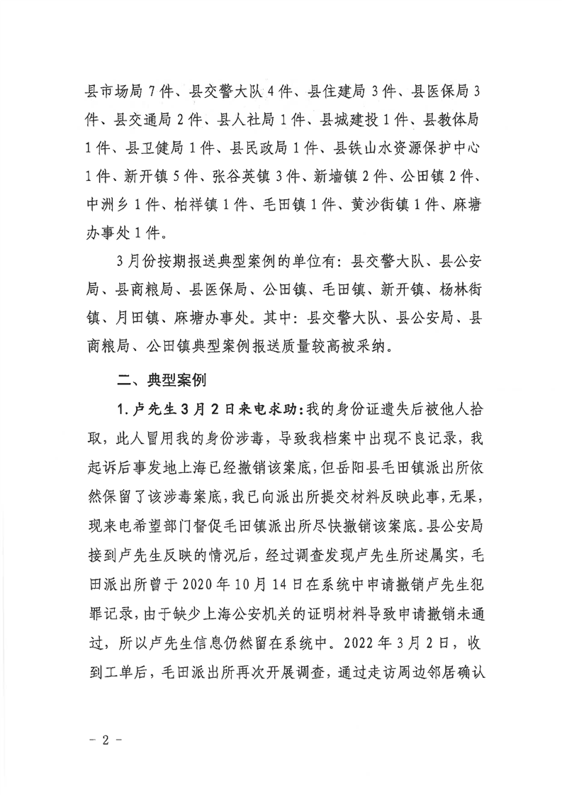 嶽陽縣12345公眾服務熱線2022年3月辦理情況通報