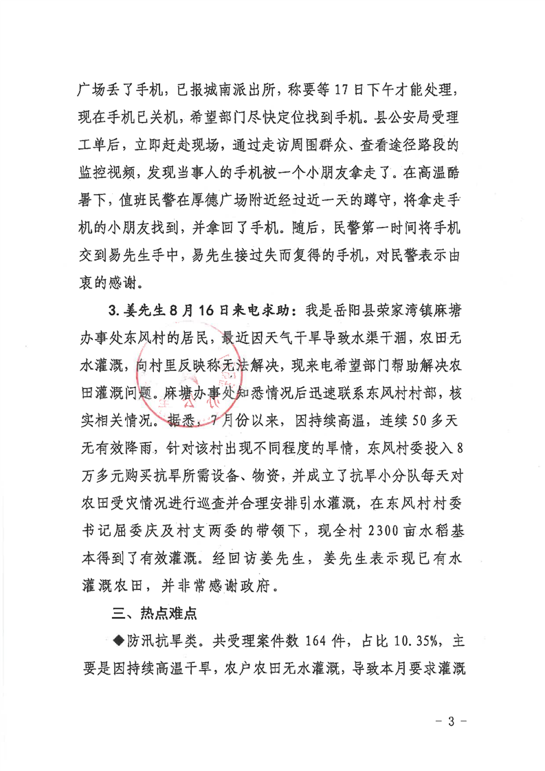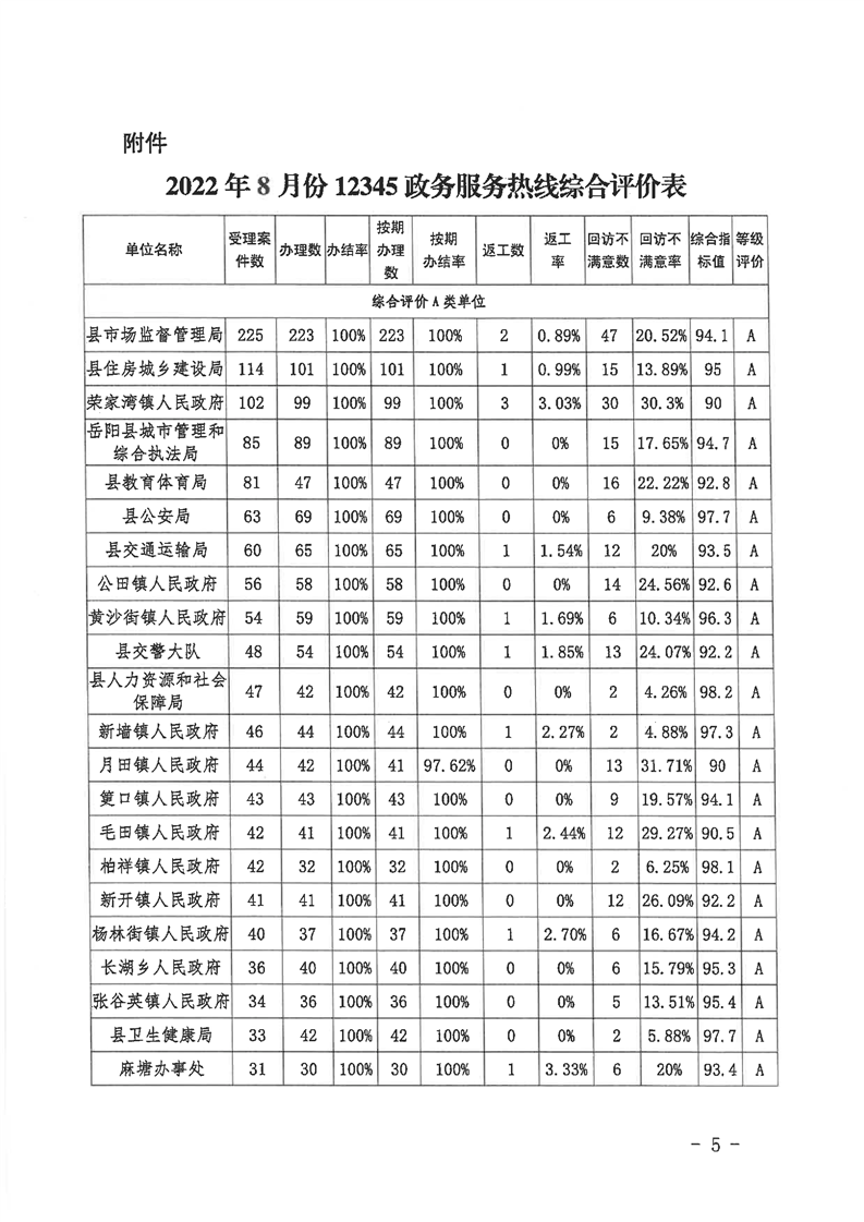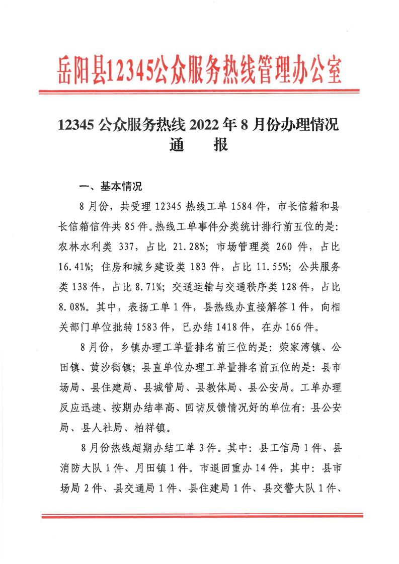 嶽陽縣12345公眾服務熱線2022年8月辦理情況通報