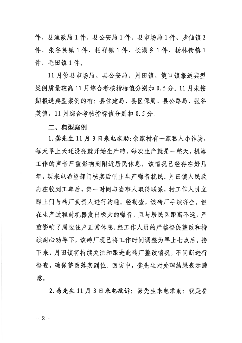 嶽陽縣12345公眾服務熱線2022年11月辦理情況通報