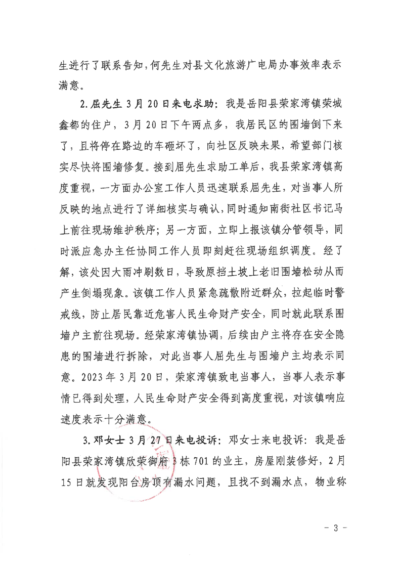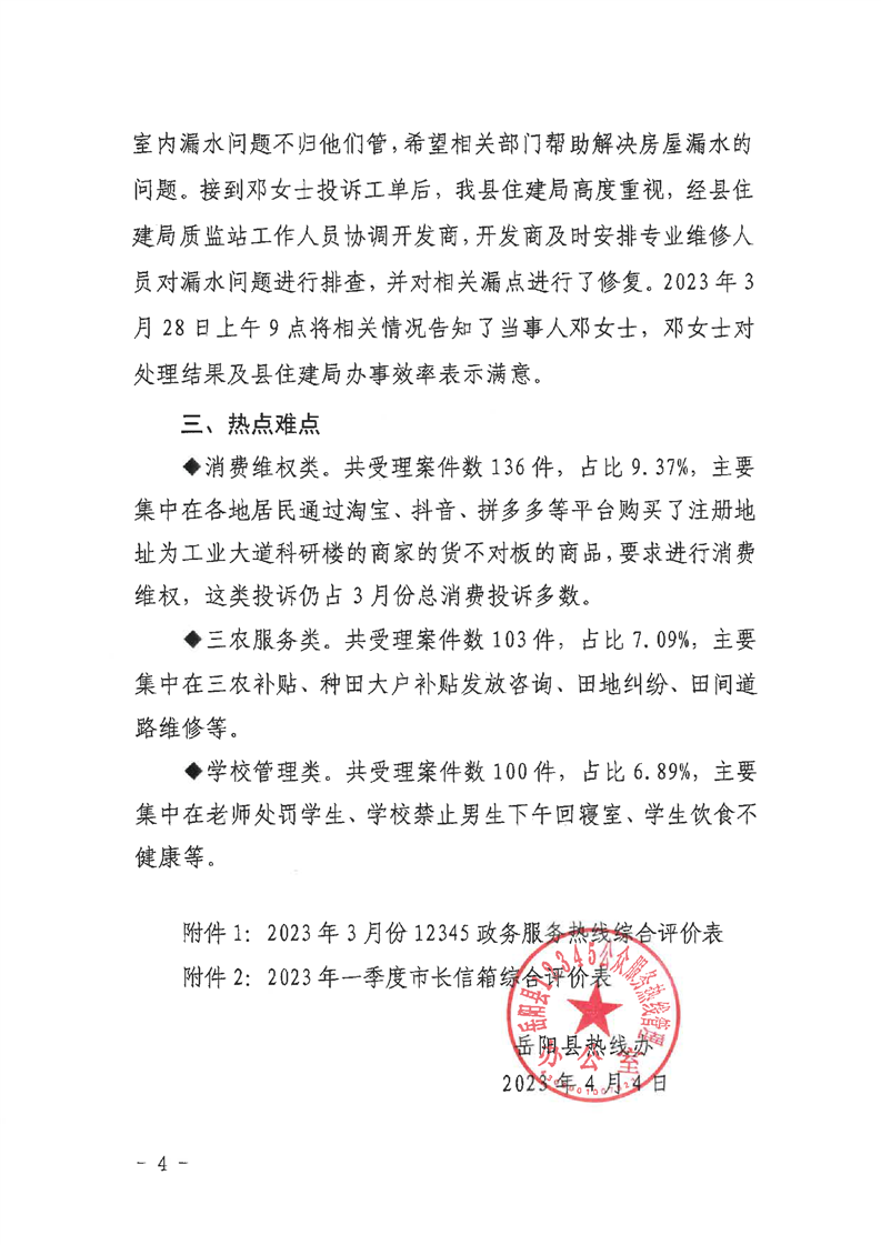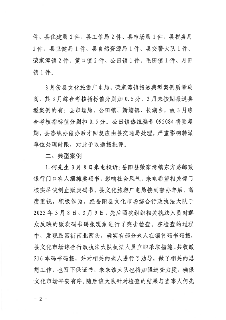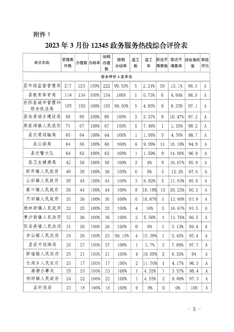 嶽陽縣12345公眾服務熱線2023年3月辦理情況通報