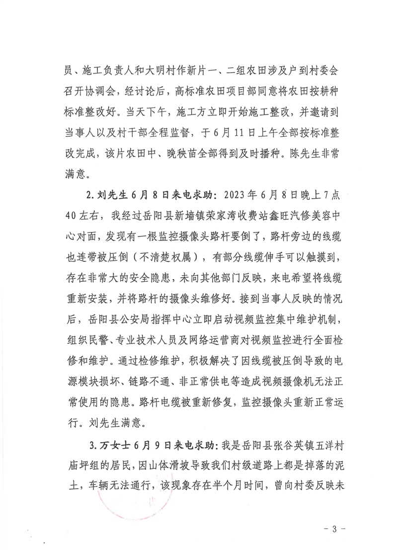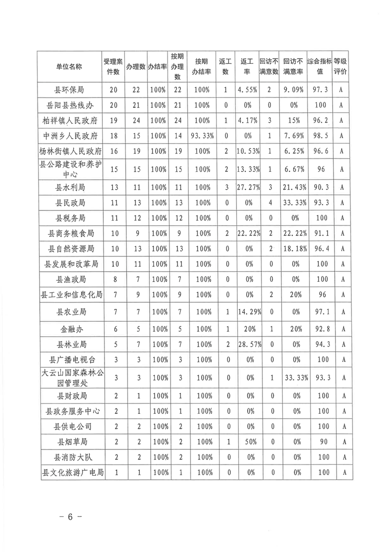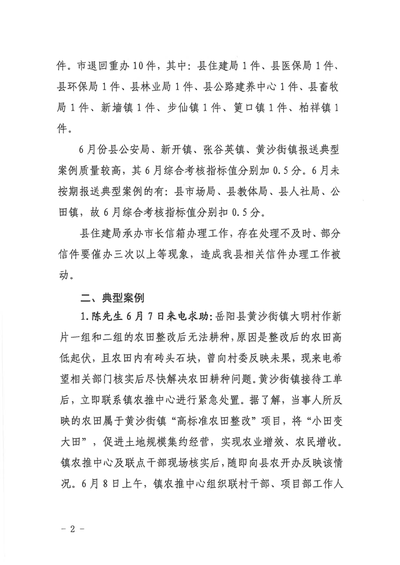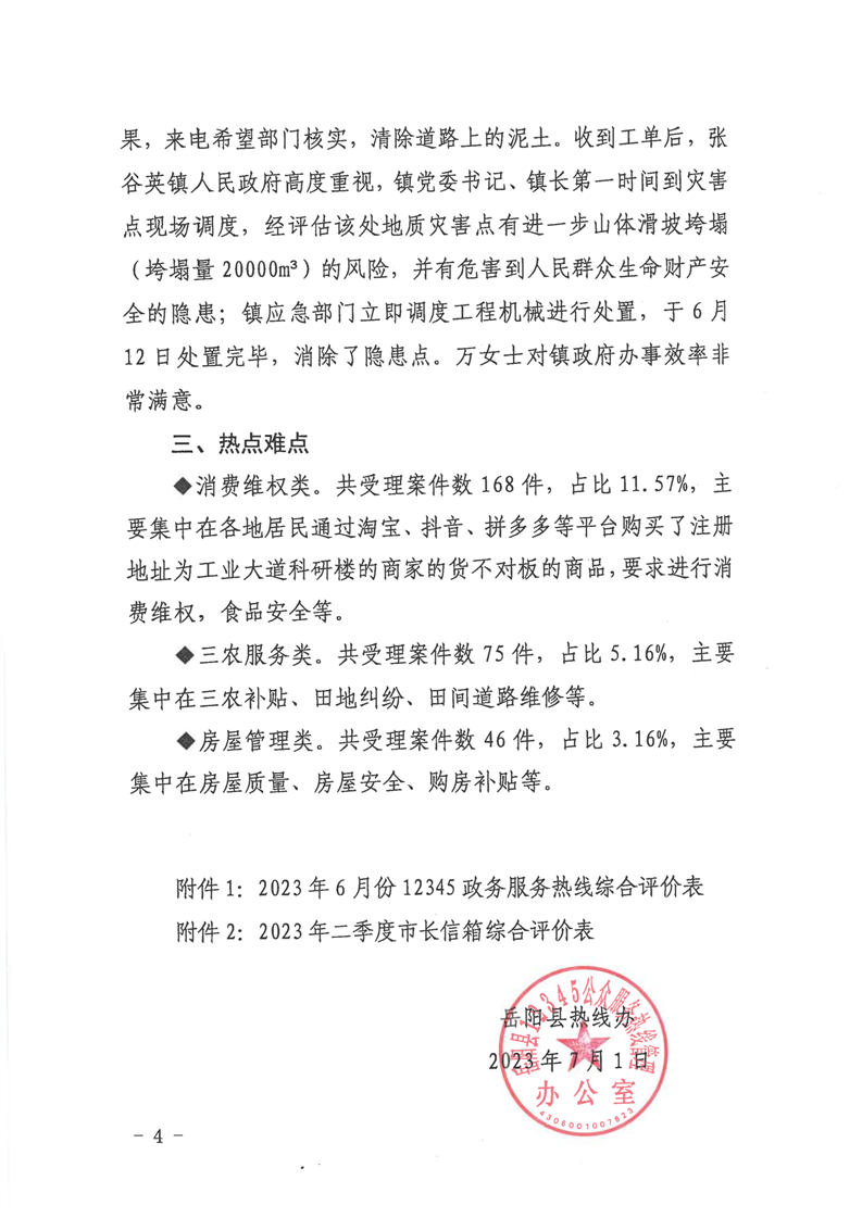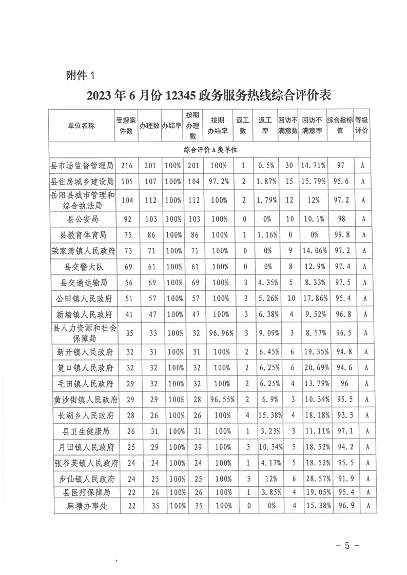嶽陽縣12345公眾服務熱線2023年6月份辦理情況通報