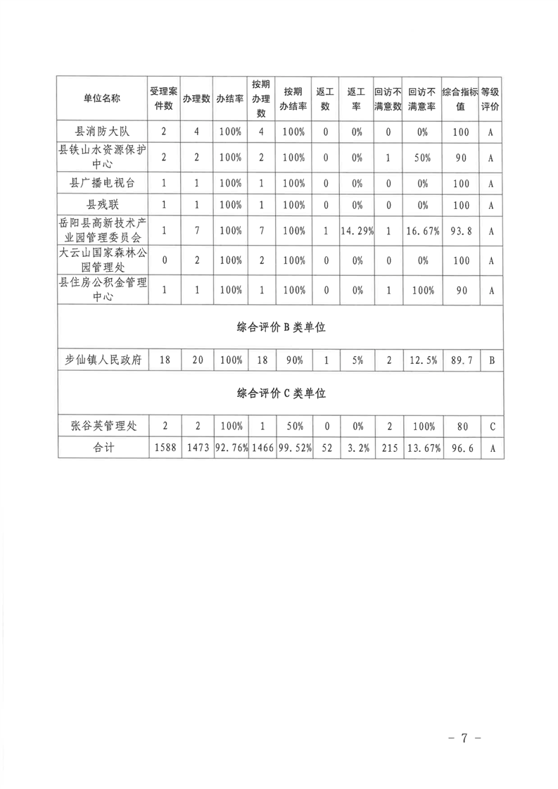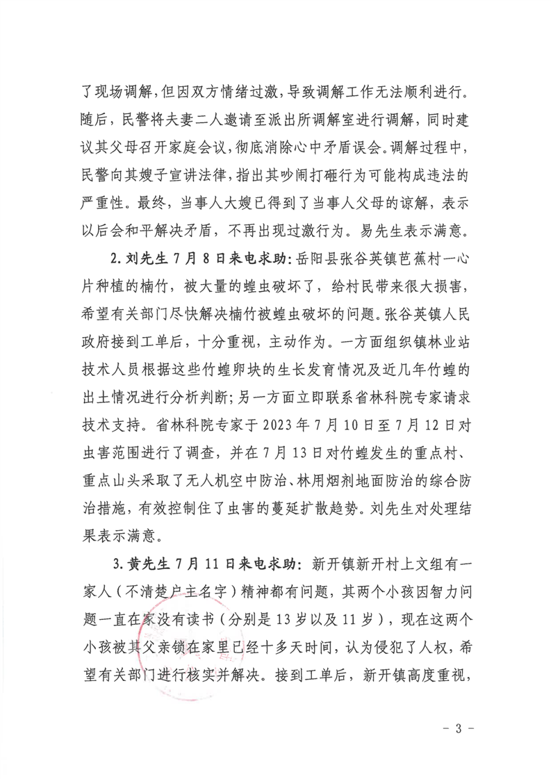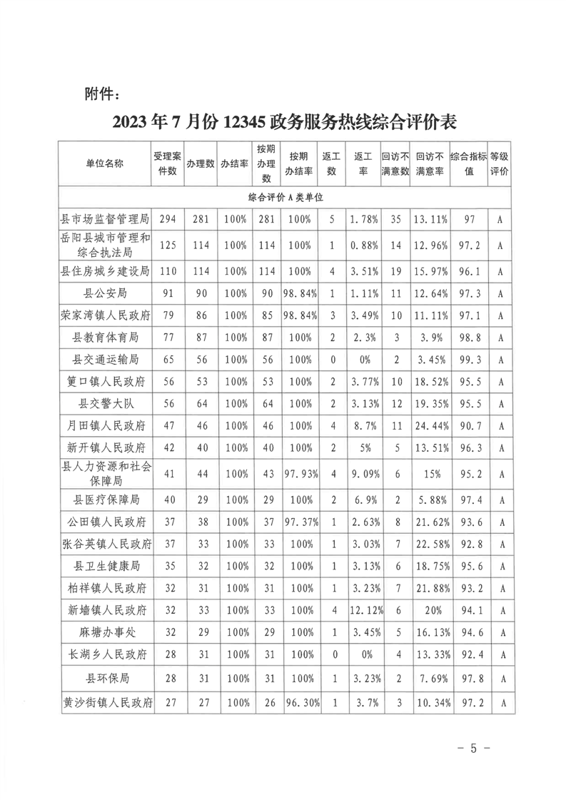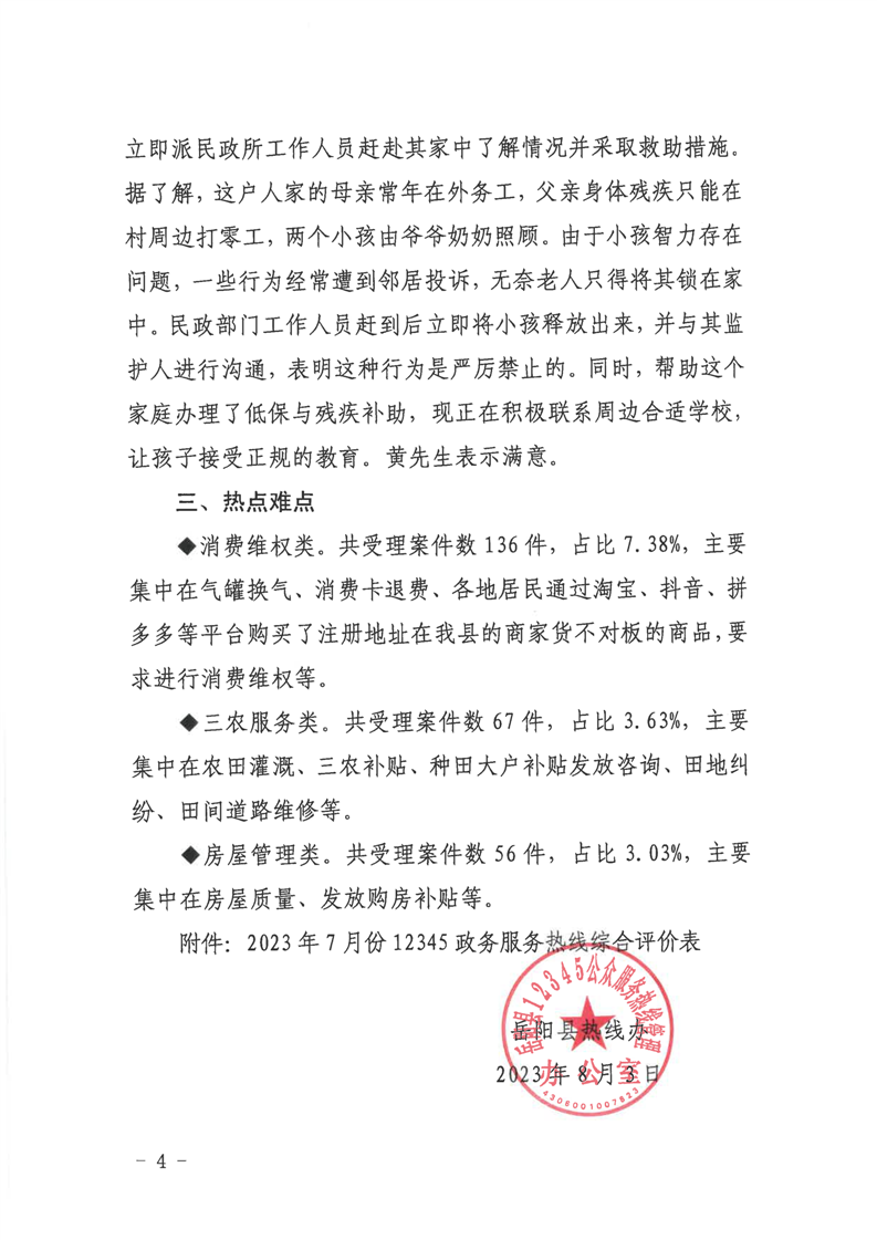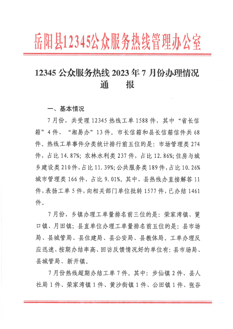 嶽陽縣12345公眾服務熱線2023年7月份辦理情況通報