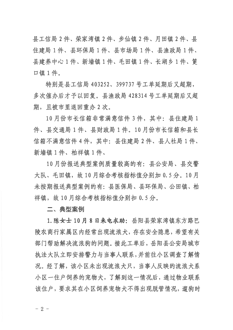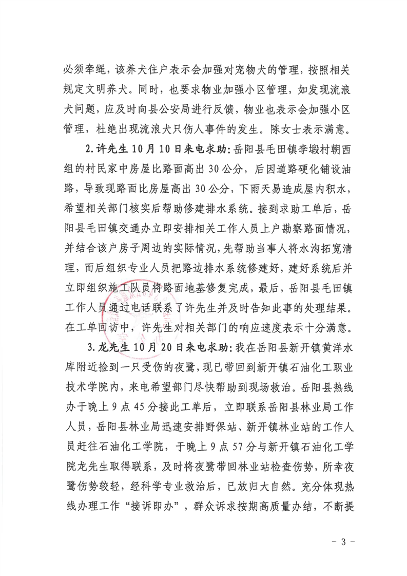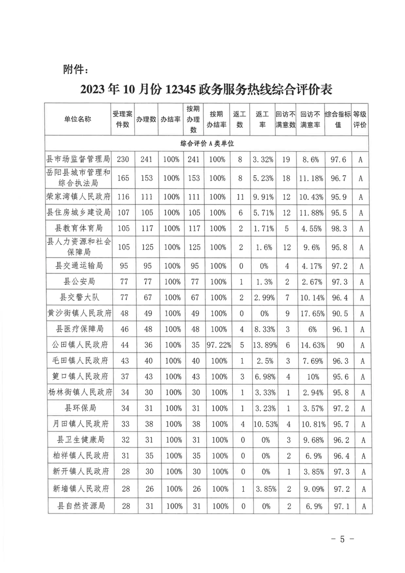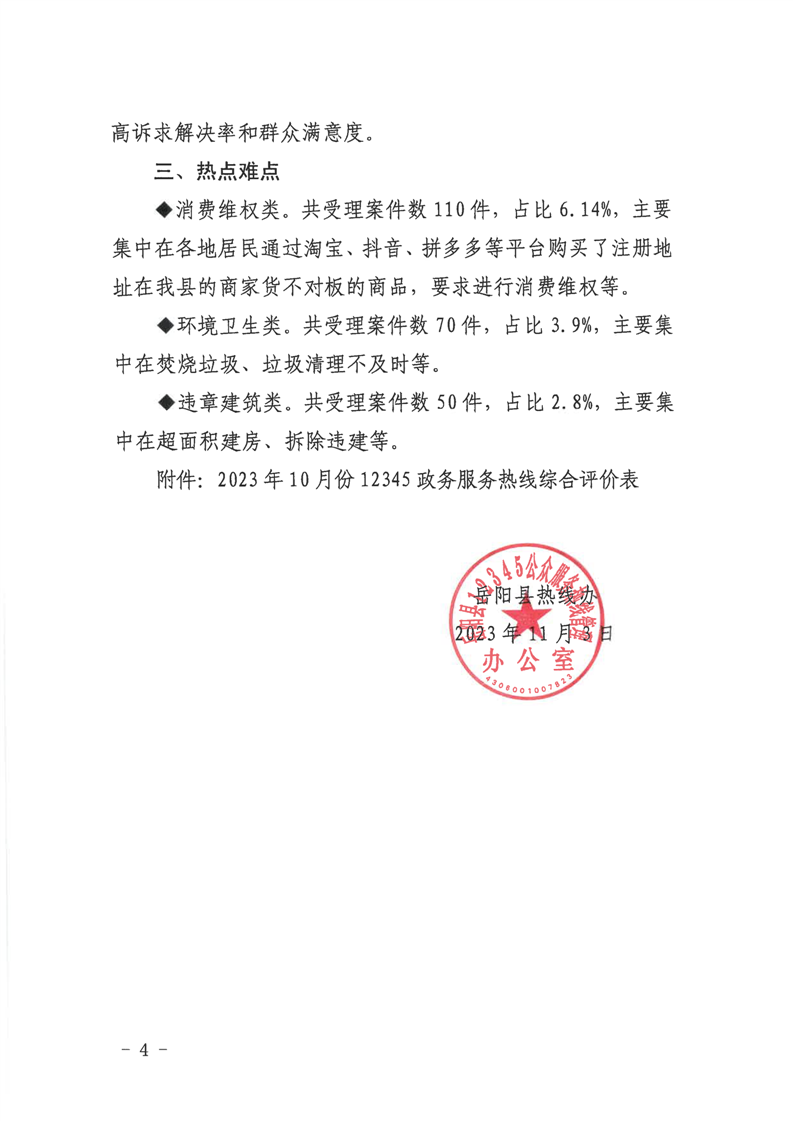 12345公眾服務熱線2023年10月份辦理情況通報