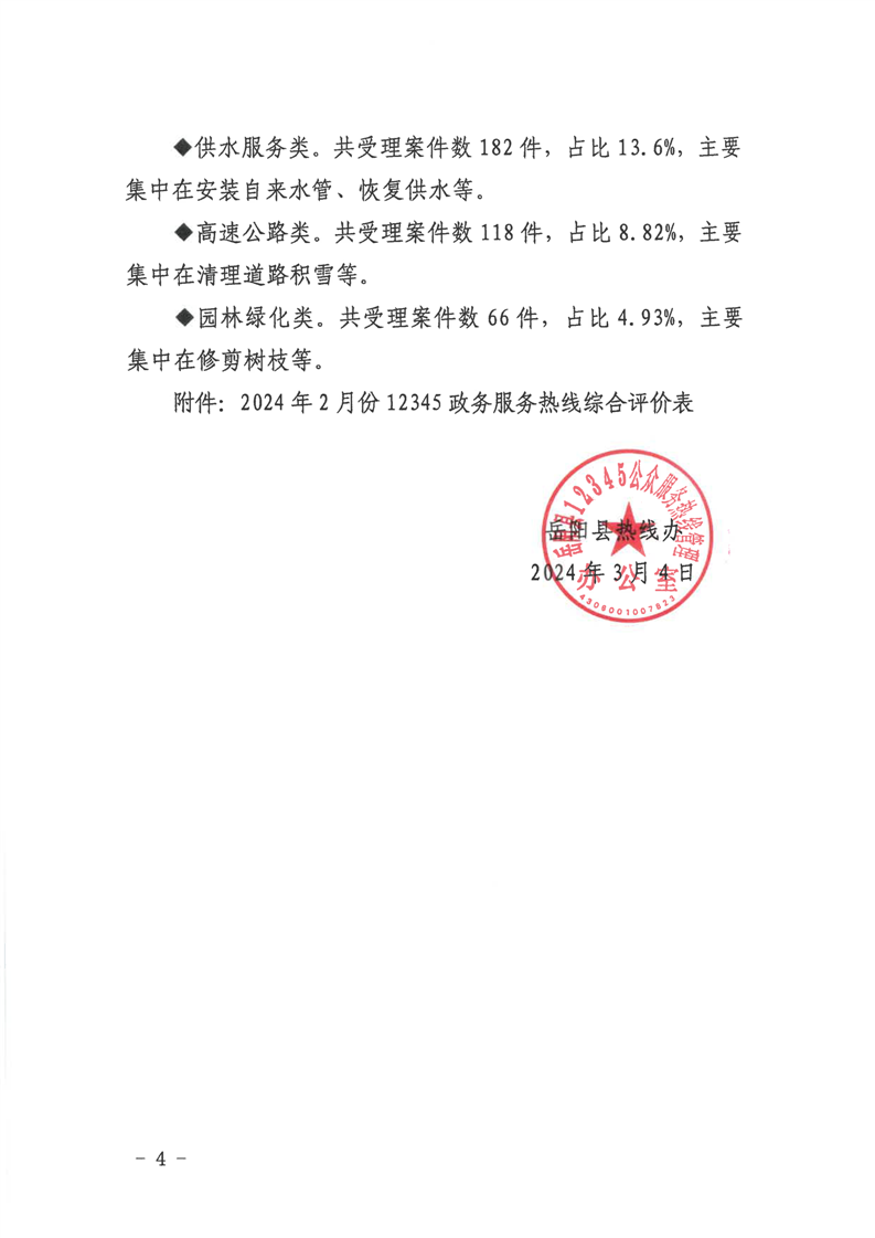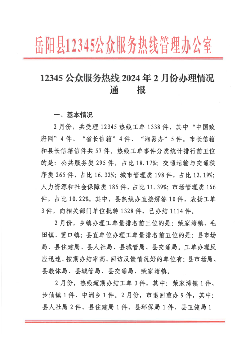 12345公眾服務熱線2024年2月份辦理情況通報