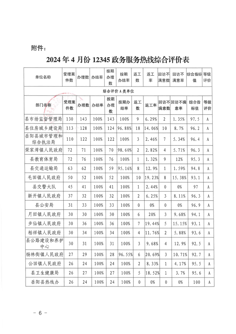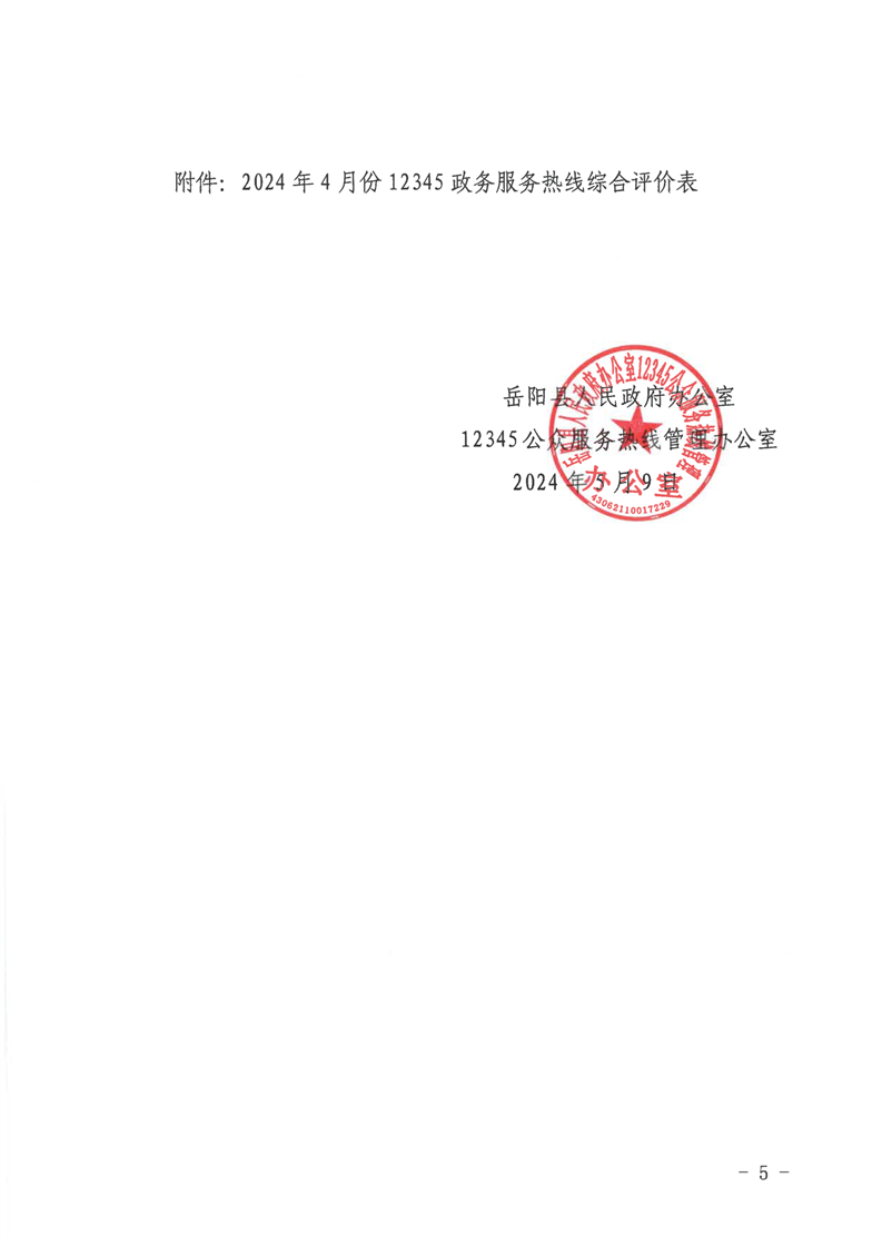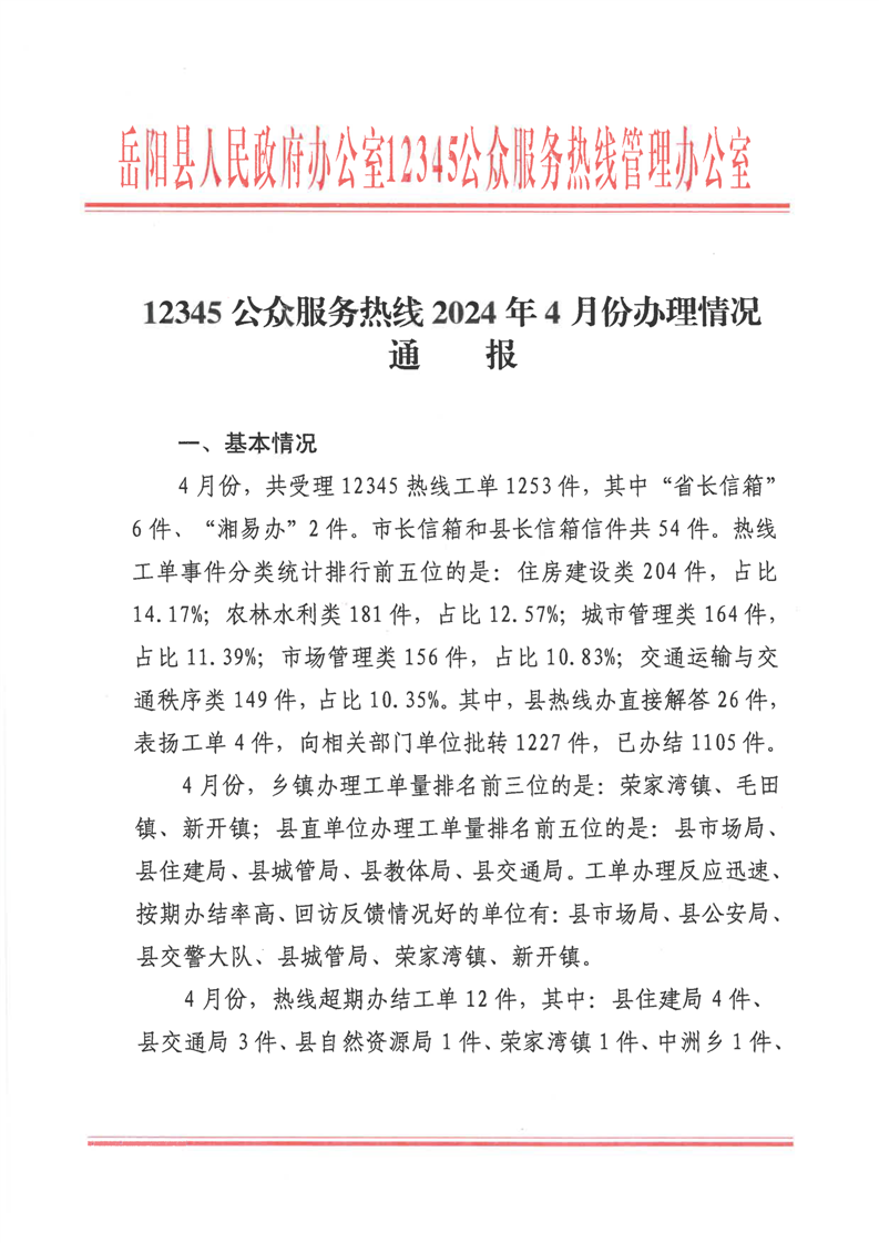 12345公眾服務熱線2024年4月份辦理情況通報