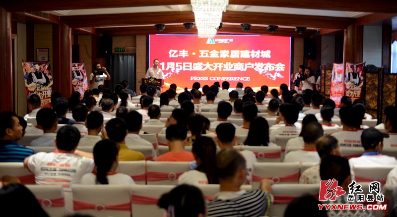紅網嶽陽縣站8-12訊(分站記者 許偉軍)8-12上午,億豐·五金家居建材城開業商戶發布會在富雅大酒店舉行,億豐·五金家居建材城將於11-5開業正式運營。億豐集團、湖南省家具行業協會秘書長、湖南億豐置業發展有限公司相關負責人及億豐·五金家居建材城200餘商戶參加了發布會。