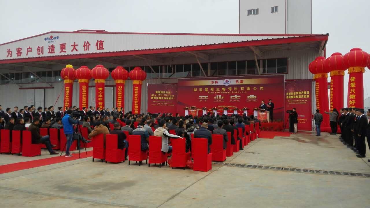 11-22,湖南嶽陽台灣農民創業園內張燈結彩、喜慶洋洋,投資1.2億元,湖南省目前唯一一家與丹麥合資企業,湖南普愛生物飼料有限公司開工慶典。參加慶典活動的有縣人民政府副縣長王衛兵、DLG集團副總裁Jacob先生、丹麥IFV投資經理陳衛女士,普愛集團董事長王瀟女士,湖南、湖北銷售商等300餘人。