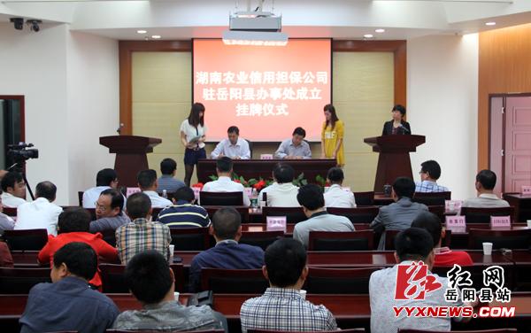 (省農業擔保公司董事長易躍進與縣長張中於共同揭牌) 5-8,湖南農業信用擔保有限公司駐嶽陽縣辦事處成立並舉行簽約、掛牌儀式。省農業擔保公司董事長易躍進、總經理賀毅,嶽陽縣委副書記、縣長張中於,縣委常委、常務副縣長李勇,縣委常委、副縣長龍立珍,市政府金融辦副主任白鎖銘參加簽約掛牌儀式,李勇致辭,龍立珍主持儀式。 湖南農業信用擔保有限公司駐嶽陽縣辦事處將秉承“服務優先、嚴控風險”的基本宗旨,以湖南農業信用擔保公司為依托,與我縣中小企業擔保合作,為我縣優勢產業和龍頭企業的發展提供融資支持,同時將致力於為我縣現代農業發展搭建健全的農業金融體係,使農業企業、銀行和擔保公司之間形成有效資金鏈,化解我縣擔保公司單筆擔保額度少、擔保貸款規模小的難題,加快我縣農業企業發展壯大,特別是對台灣農民創業園的發展將起到極其重要的作用。