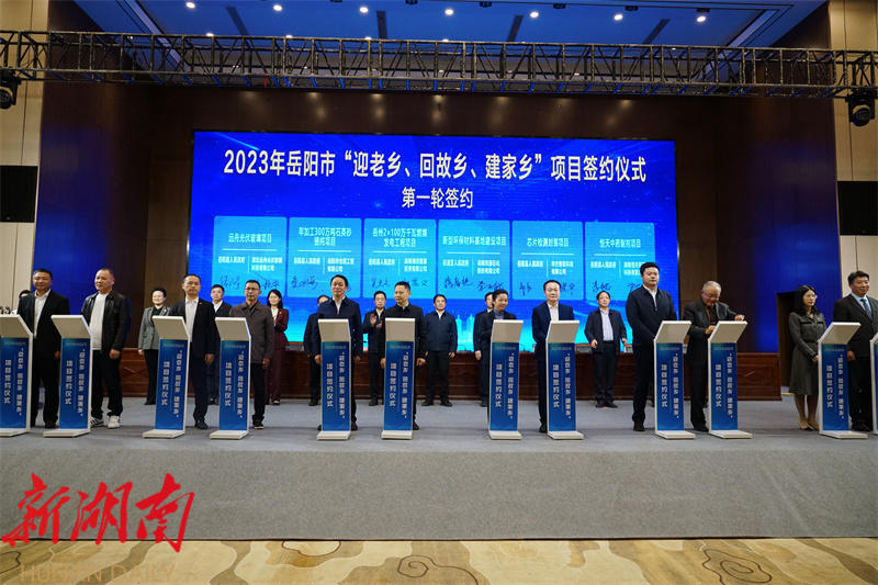 會議舉行了全市“迎老鄉、回故鄉、建家鄉”項目簽約儀式,共簽約18個項目,總投資146.9億元;嶽陽縣、湘陰縣和2家鄉友企業代表作了會議發言。