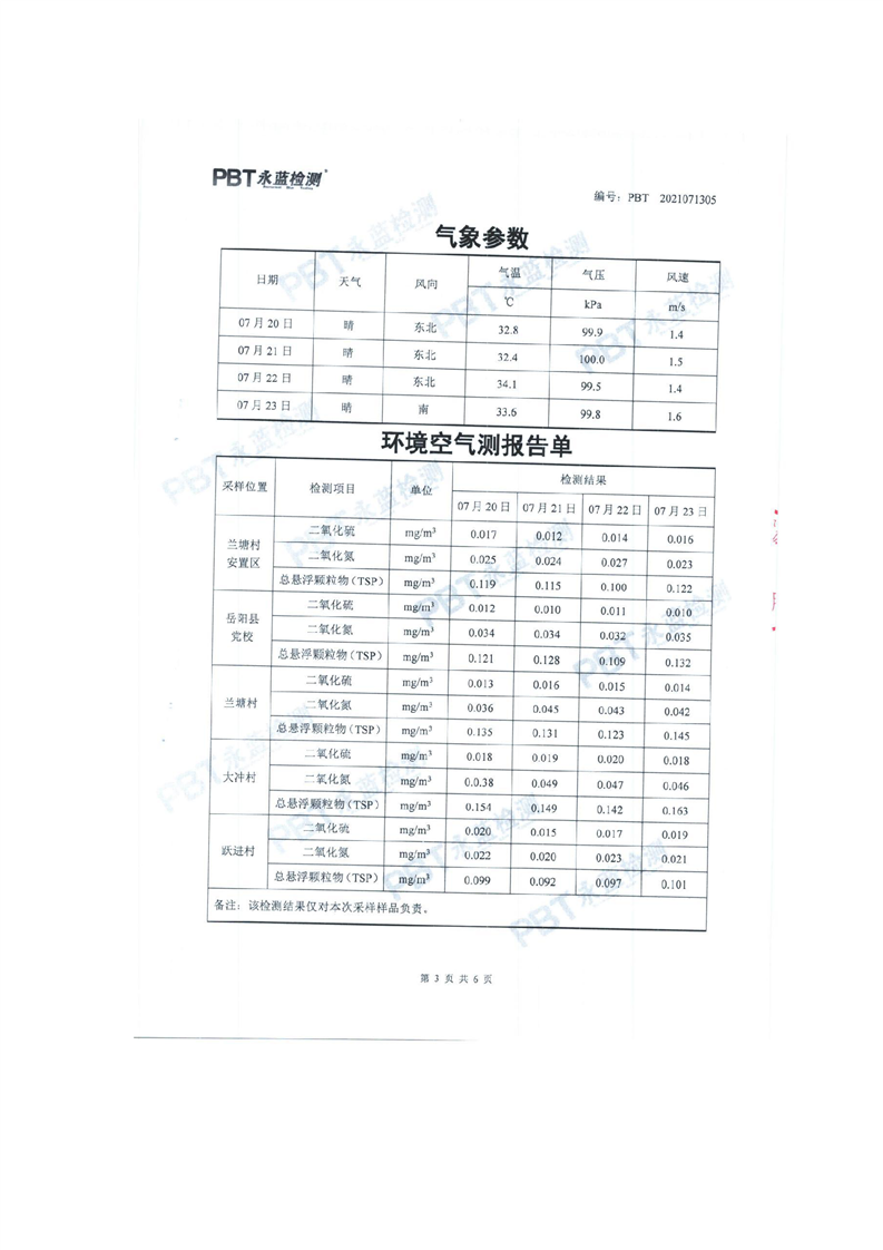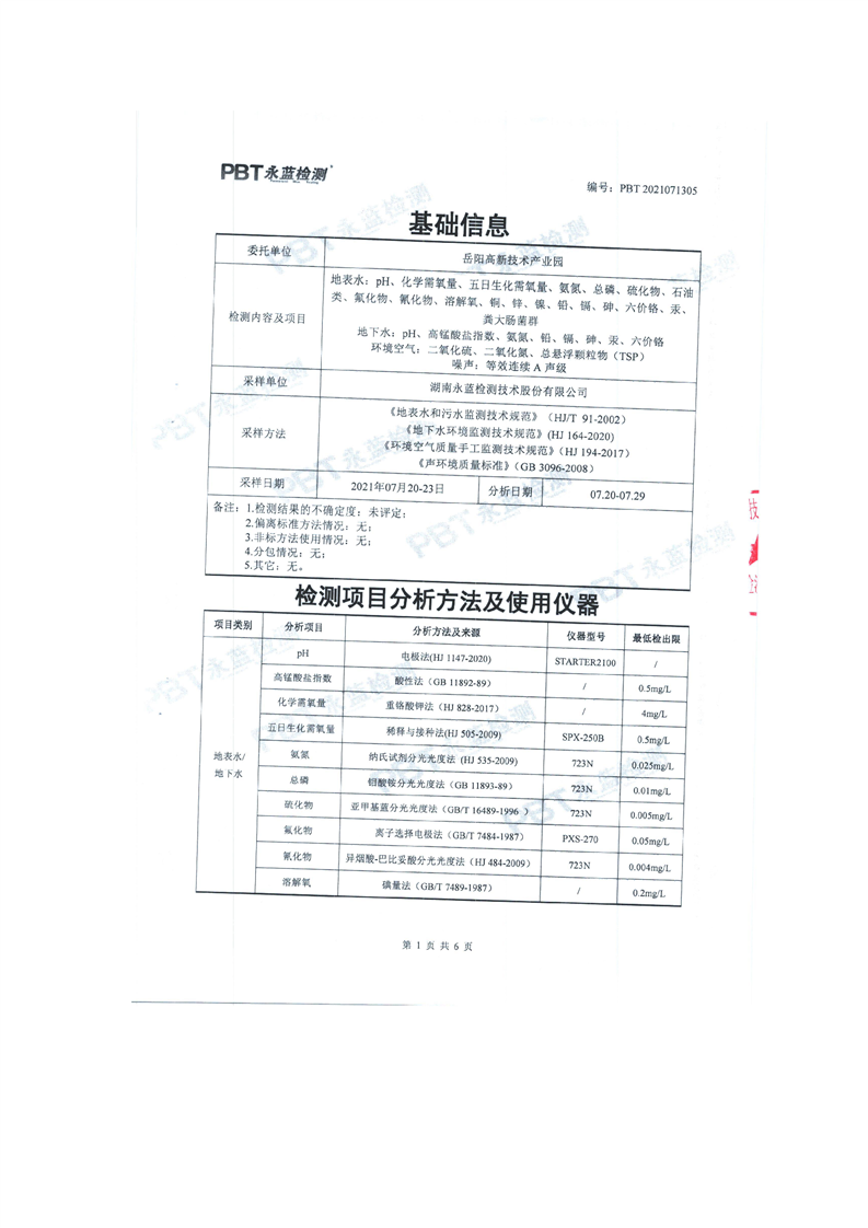 嶽陽高新技術產業園區2021年3季度環境質量監測報告