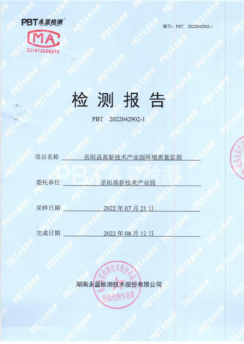 2022年度第三季度嶽陽高新技術產業園區環境質量監測