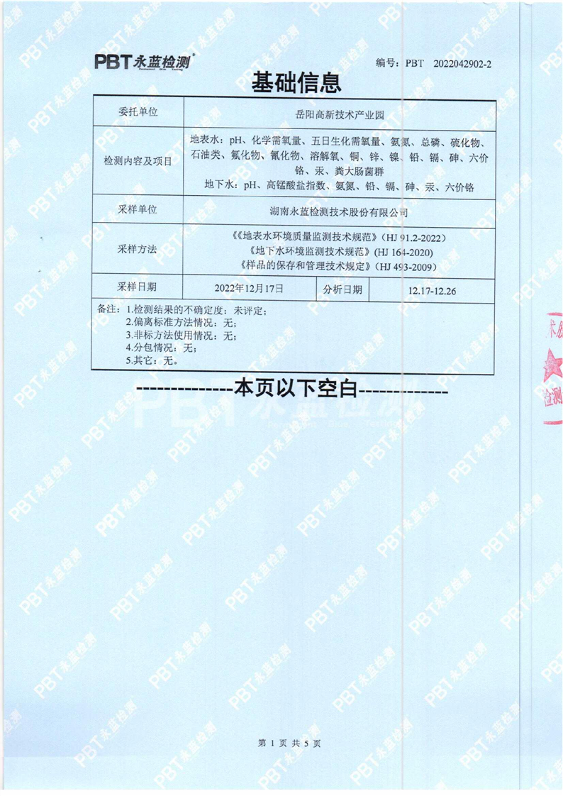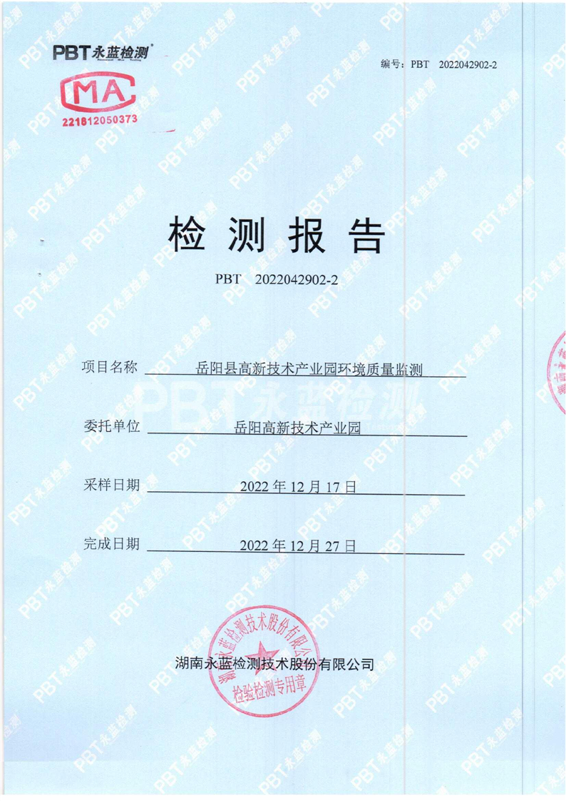 2022年度第四季度嶽陽高新技術產業園區環境質量監測