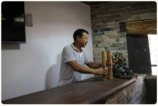 在張穀英景區長壽走廊,“張乙謀茶酒鋪”以古香古色的裝修風格吸引著來來往往遊客。茶酒鋪老板張榮軍,一位地地道道的張穀英漢子,在外闖蕩多-後,毅然回歸這裏,決定在故鄉肥沃的土壤裏播撒下自己的夢想之種。