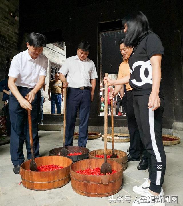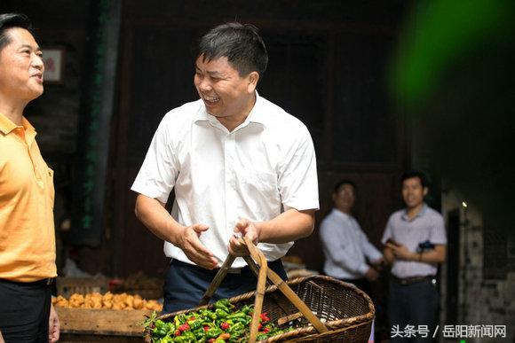 嶽陽市領導趙嶽平、方爭奇與嶽陽縣領導曾平原競賽剁辣椒,邊剁邊開懷:“关键词2做農活還沒手生呢,哈哈……”