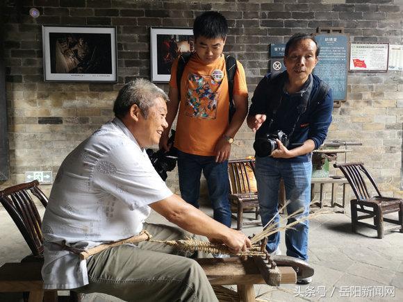 打草鞋的大爺被攝影師圍觀拍攝,找點明星感覺樂嗬嗬