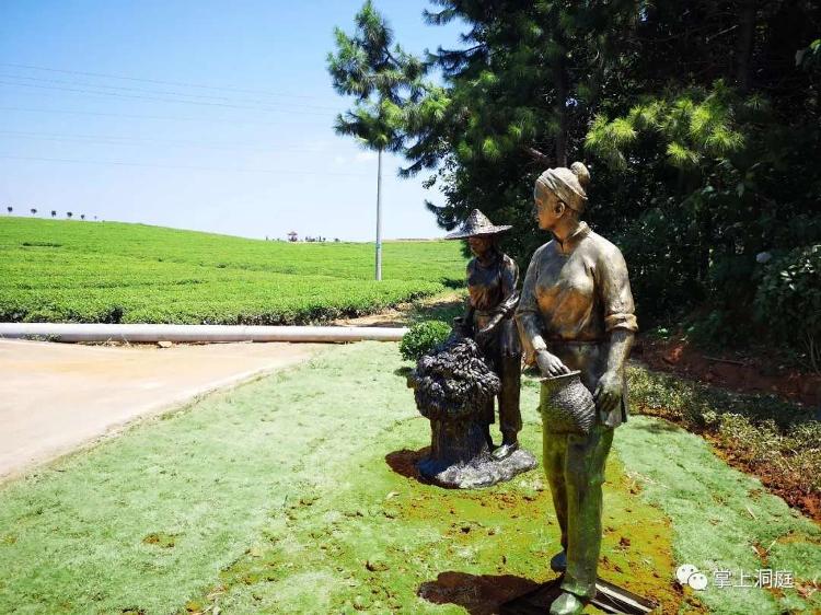 茶香聲自遠,秀美洞庭秋。在小鎮的洞庭春茶園裏,修建了寬敞的柏油線路,開辟了觀光的新景點。滿山青翠的萬畝茶樹,一排排地葡伏在連綿起伏的山崗上,就像一條條臥下的青龍。它們雖經受完夏天炎熱的暴曬,依然生長旺盛,現在白色的茶花綻放,散發著撲鼻的清香。