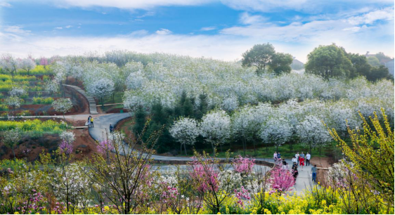 嶽陽櫻花園,位於嶽陽縣榮家灣鎮,占地1063畝,有各種櫻花10萬多株,十年以上樹齡2萬多株,是全國最大專業櫻花園。園內建成賞櫻區,玩櫻區,養櫻區,集散區四大功能區。每年3、4月開花時間,上麵千畝櫻花盛開,下麵千畝草花競放,中間億萬落櫻飛舞,構成花團錦簇的壯麗景觀。2018年被評為湖南省五星級鄉村旅遊區(點)。