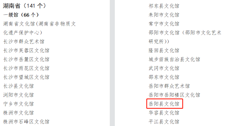 近日,文化和旅遊部組織開展了第五次全國文化館評估定級工作,經自評、線上評估和實地抽查評估等環節,確定了第五次全國文化館評估定級擬命名一二三級文化館名單,嶽陽縣文化館擬評國家一級文化館。