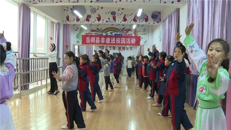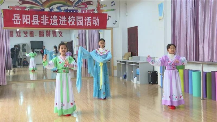 嶽陽花鼓戲起於清·嘉慶癸亥年間距今已有200多年的曆史深受人民群眾喜愛在其發展過程中吸收了嶽陽民間小調、山歌特色具有濃鬱的地方文化色彩近年來縣文化館聯合明德小學推出的“花鼓戲進校園”活動不僅拓寬學生學習藝術的空間也助力國家非物質文化遺產更好傳承