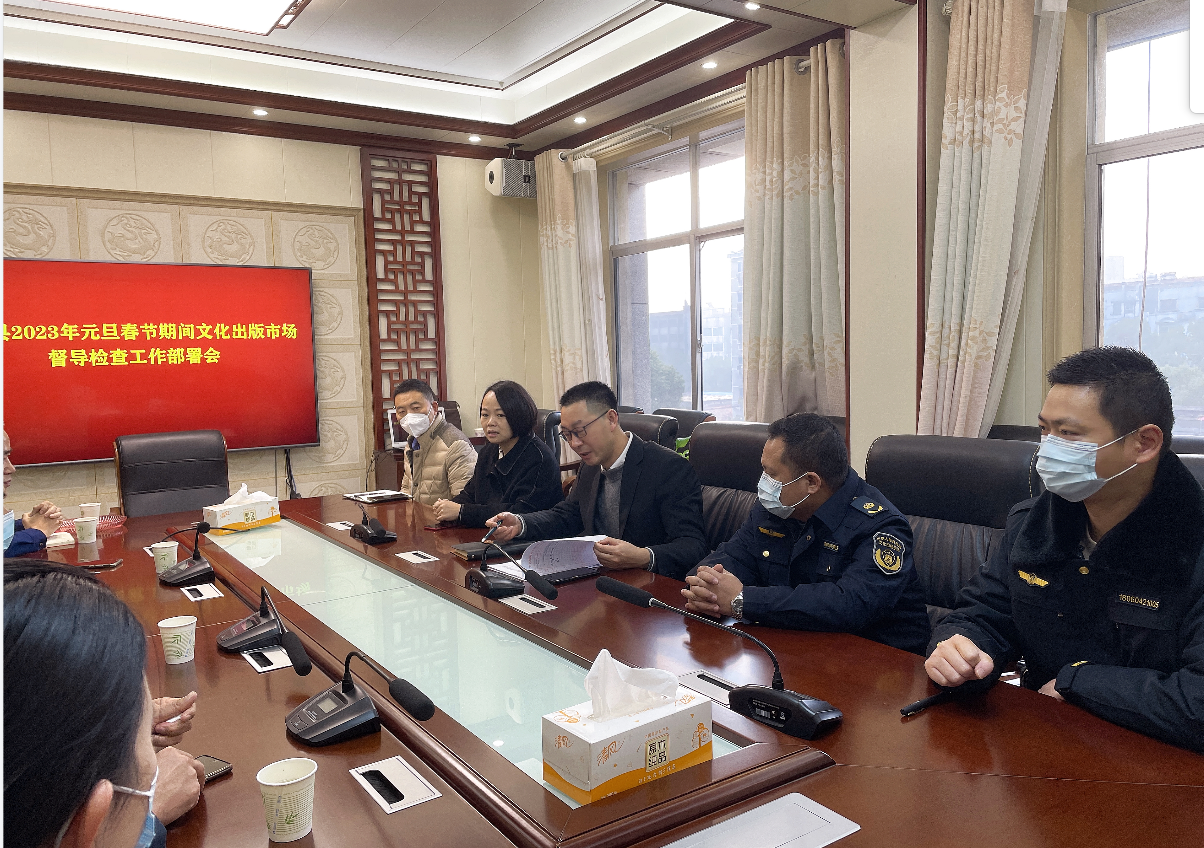 為確保我縣“春節”節日期間文化市場風清氣朗,1月12日縣“掃黃打非”領導小組組織文旅廣電局、市場局、消防大隊、文化市場執法大隊等職能部門開展春節節前文化市場秩序聯合執法檢查,確保春節期間我縣文化市場經營秩序規範有序、安全穩定。