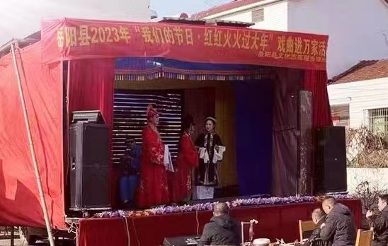 1月25日,由縣文旅廣電局主辦的嶽陽縣2023年“关键词2的節日·紅紅火火過大年”戲曲進萬家第八場活動在柏祥鎮中村村舉行。縣花鼓戲劇團為村民們送上了《小姑賢》、《薛平貴回窯》等傳統劇目,受到了村民們的一致好評。