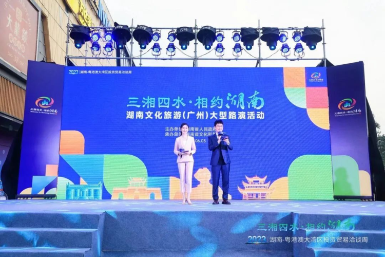 2023年湖南-粵港澳大灣區投資貿易洽談周“三湘四水·相約湖南”湖南文化旅遊推廣活動由湖南省人民政府主辦、湖南省文化和旅遊廳承辦,包括湖南文化旅遊推介會、粵湘兩地旅行商業務洽談會、“湘字號”品牌和湖南旅遊風光圖片展及湖南文化旅遊大型路演活動,通過視覺、聽覺、感覺、觸覺等多維度向大灣區民眾展示湖南瑰麗多姿的文化旅遊魅力,邀請粵港澳大灣區遊客相約湖南,飽覽三湘醉美山水與厚重人文。
