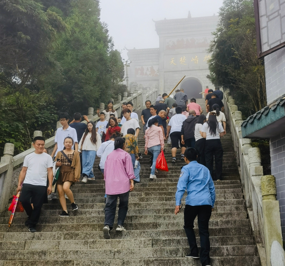 金秋十月,國慶與豐收季重合,近郊鄉村遊、親子遊、登山遊深受出遊家庭喜愛。黃秀農耕文化園推出鄉野茶花會、長桌宴、露天KTV、煙花、篝火、烤全羊等活動。吃農家飯、看農家景、享農家樂,呼吸清新空氣、欣賞優美山水田園風景備受歡迎。苒苒物華,秋色正濃,趁著秋高氣爽,眾多遊客來大雲山景區遠離城市喧囂,呼吸新鮮空氣,一覽高山美景,祈福許願,共度美好佳節。