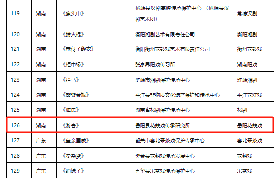 3月21日,文化和旅遊部官網發布“文化和旅遊部藝術司關於《優秀傳統戲曲折子複排計劃名錄》的公示”,我縣嶽陽花鼓戲《遊春》入選。