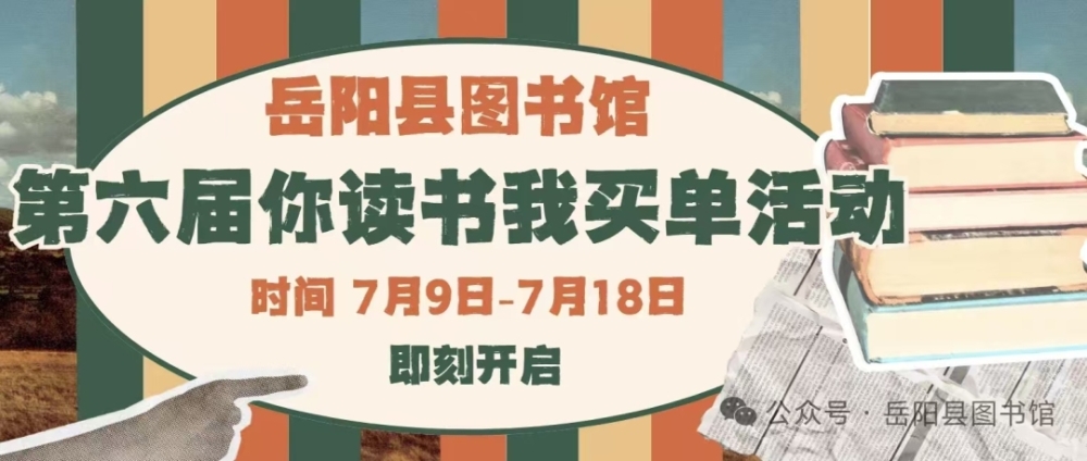 書香浸潤巴陵,閱讀點亮生活!嶽陽縣圖書館聯合縣大家書屋重磅推出第六屆"你讀書·我買單"全民閱讀活動,讓您化身圖書館的"選書師",讀新書、享好書,所有費用关键词2買單!