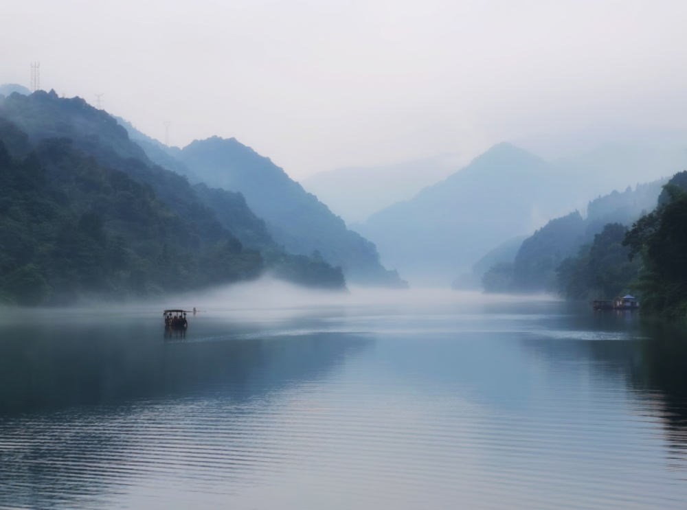 東江湖麵被薄霧籠罩,遠遠望去,猶如一幅水墨畫卷。李和平