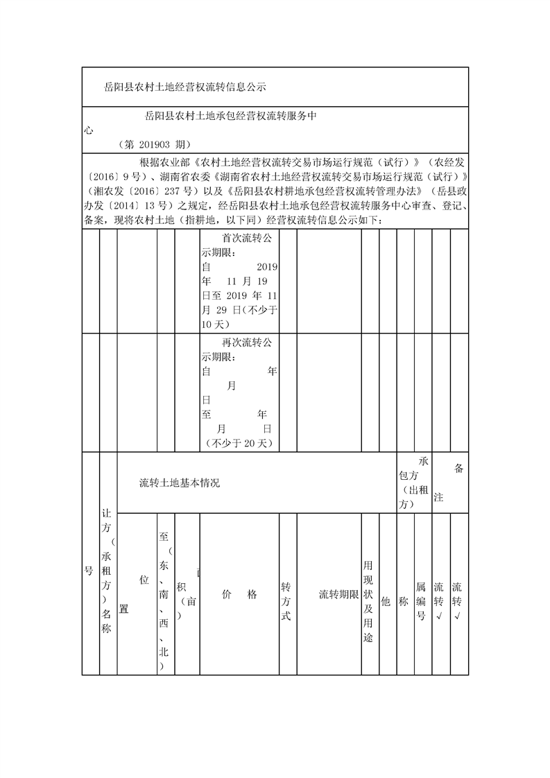 嶽陽縣農村土地經營權流轉信息公示 (第 201903 期)
