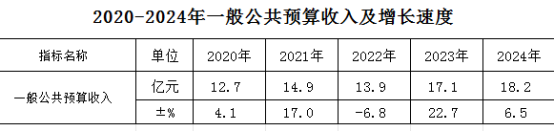 全縣一般公共預算收入18.17億元,同比增長6.5%。一般公共預算地方收入11.23億元,同比增長10.1%。稅收收入15.84億元,占一般公共預算收入的87.1%。