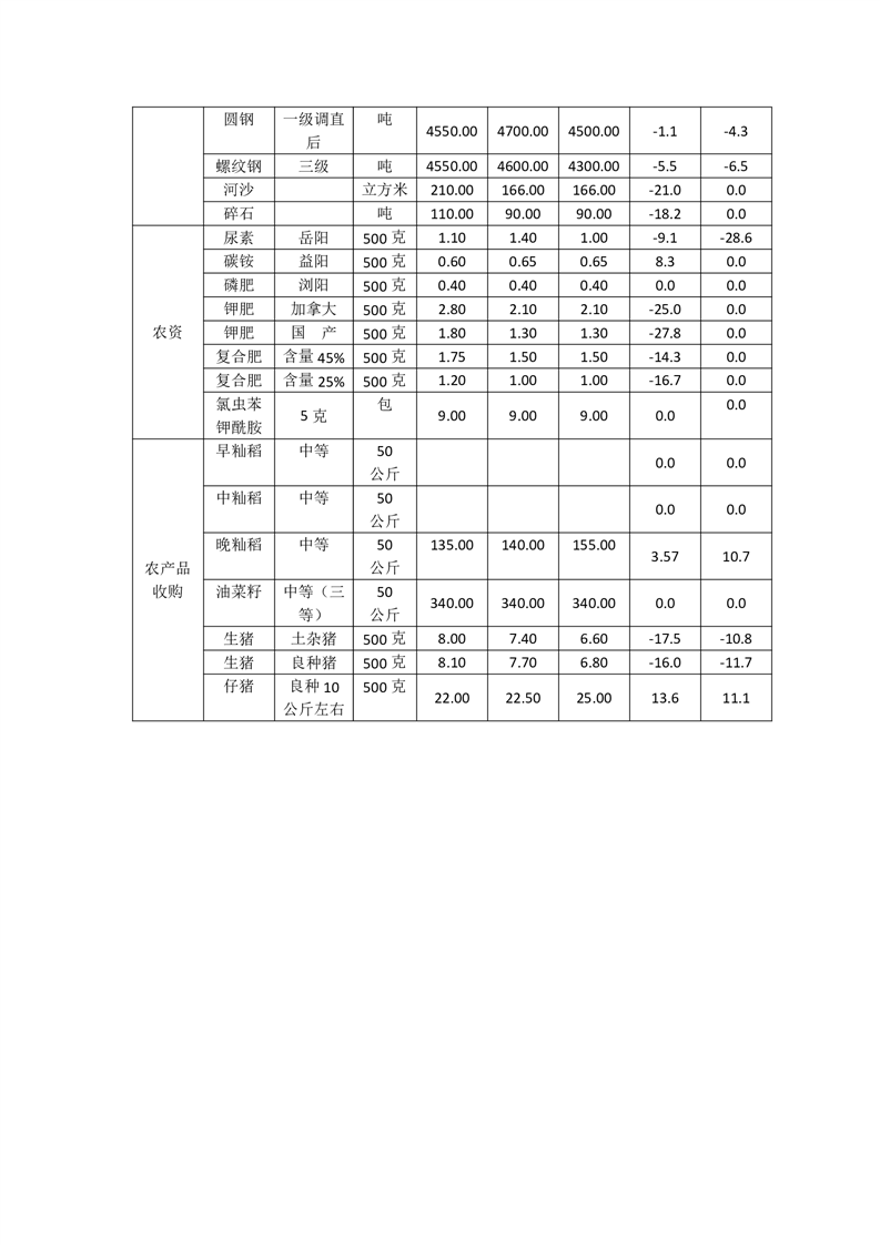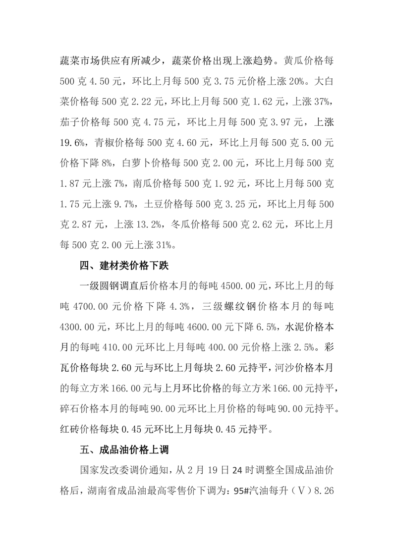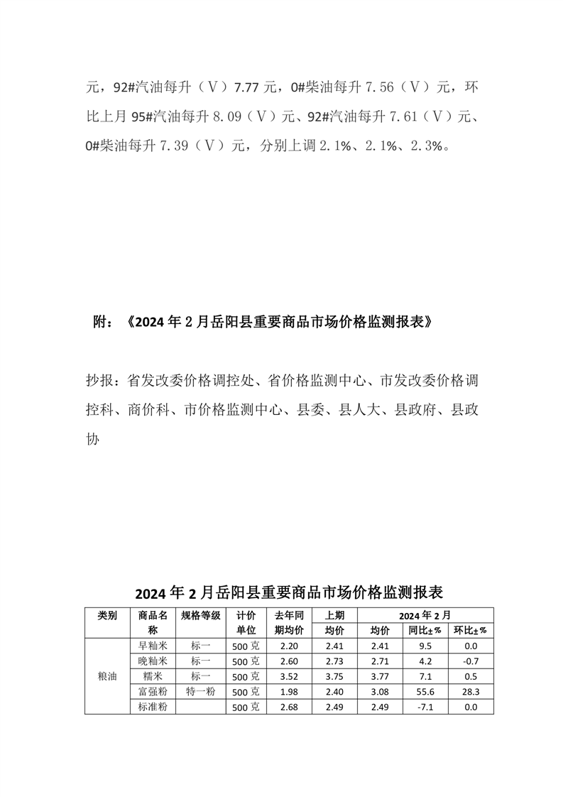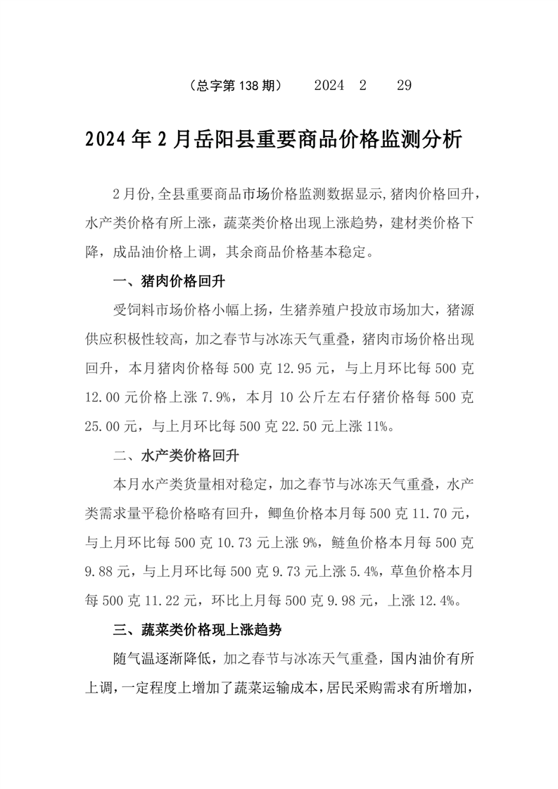 2024年2月嶽陽縣重要商品價格監測分析