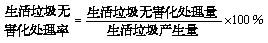 生活垃圾無害化處理率 指報告期生活垃圾無害化處理量與生活垃圾產生量的比率。在統計上,由於生活垃圾產生量不易取得,可用清運量代替。計算公式為: