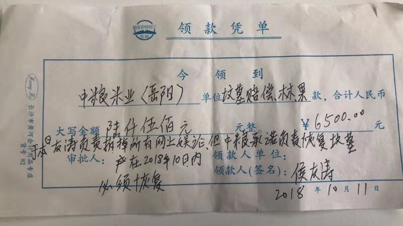 湖南省嶽陽縣榮家灣鎮生態工業園內的嶽陽縣中糧米業(中糧集團),擅自挖掘破壞我家祖墳、林地和茶樹,對我家造成了嚴重的精神損害,侵犯了我家的財產權。