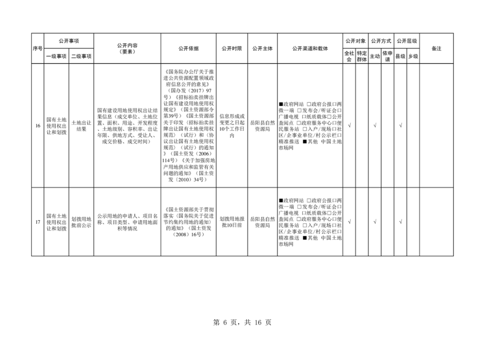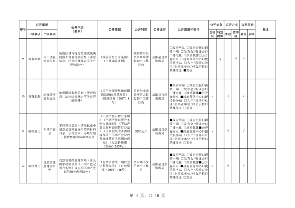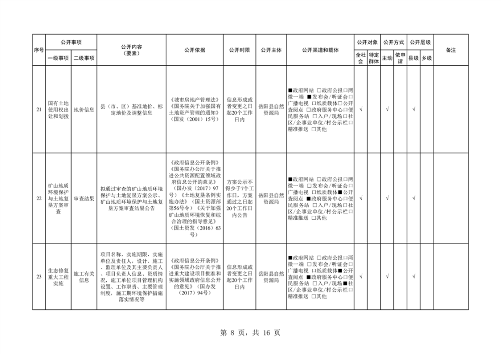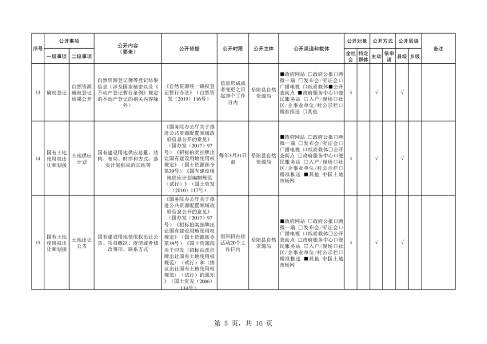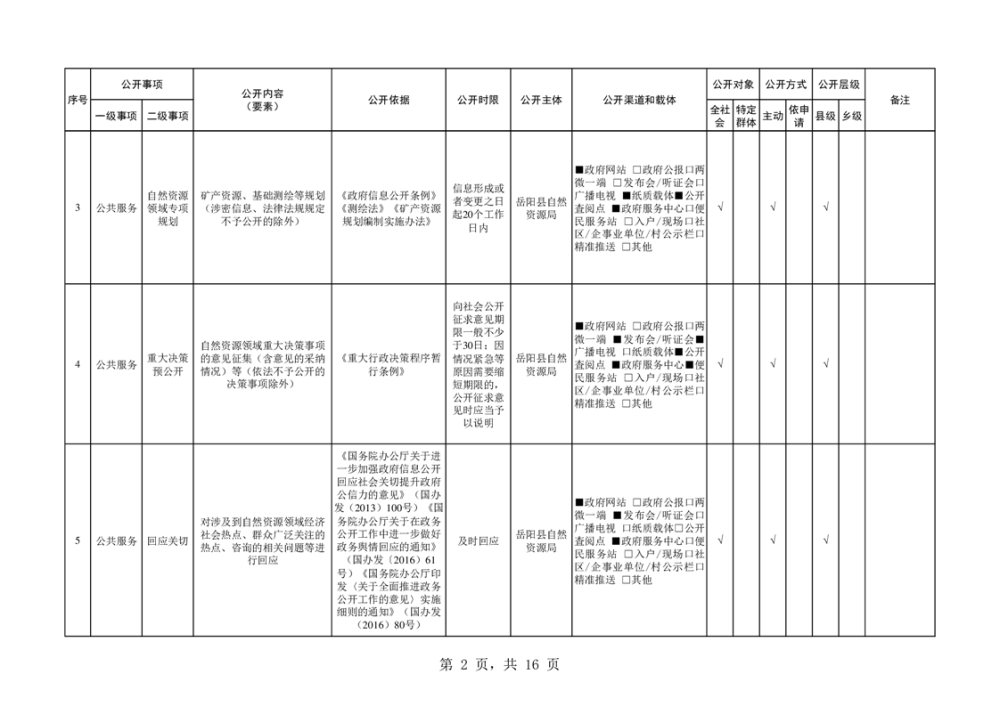 嶽陽縣自然資源領域基層政務公開標準目錄